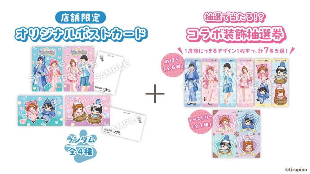 極楽湯/RAKU SPA公式&GK Store公式Xアカウントをフォロー+ハッシュタグ「#ちろぴの極楽湯」をつけて、コラボにまつわる内容をXで投稿し、店舗の受付にご提示いただいた方に、コラボオリジナルデザインのポストカードや館内装飾が当たる抽選券をプレゼントします。