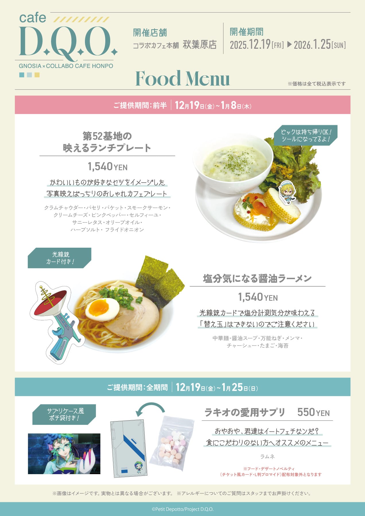グノーシア × コラボカフェ本舗 秋葉原店のメニュー