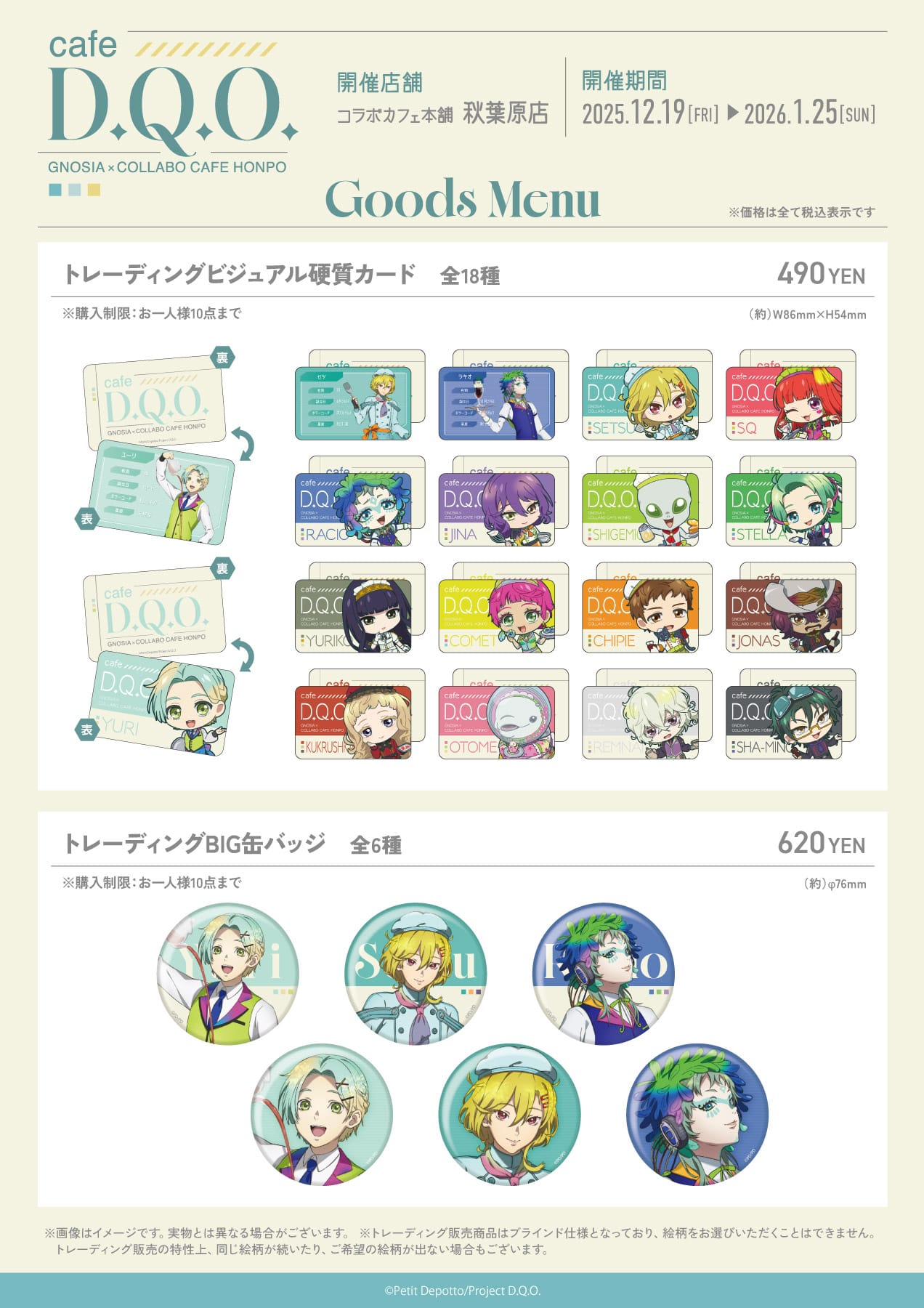 2025年12月19日〜2026年1月25日まで開催される「グノーシア」カフェでは、描き下ろしイラストや描き起こしミニキャライラストを使用した「トレーディングビジュアル硬質カード」「トレーディングBIG缶バッジ」などのコラボカフェ限定グッズが多数登場!