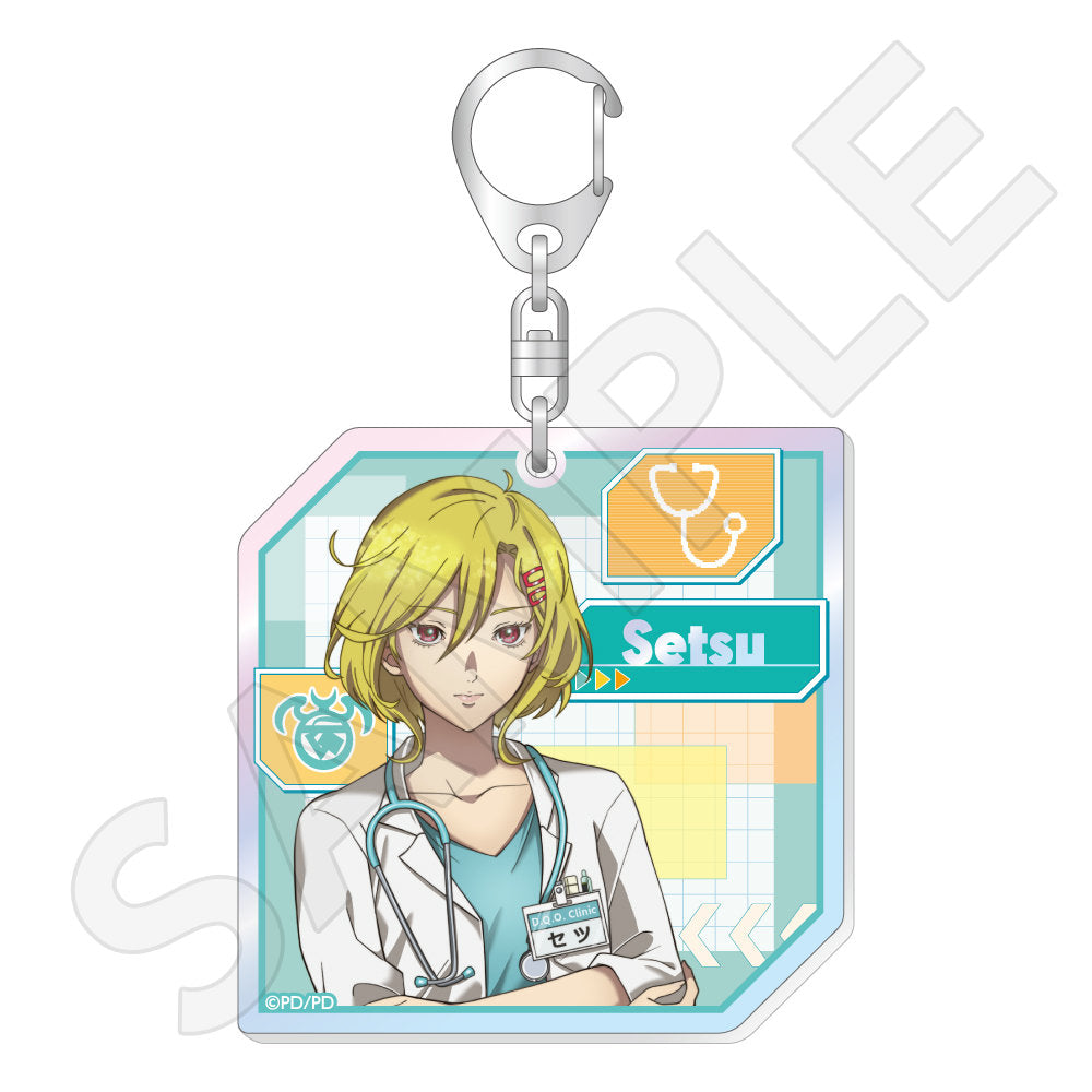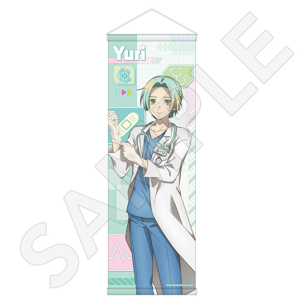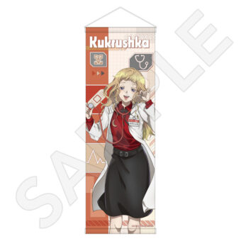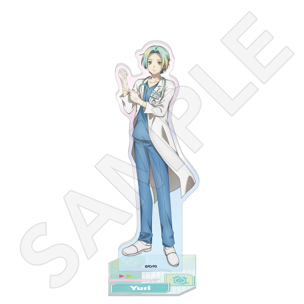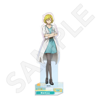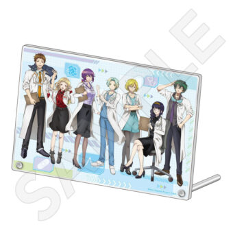 ユーリ・セツ・ジナ・夕里子・シピ・ククルシカ・沙明たちが、白衣姿に身を包む描き下ろしイラストを使用した「オーロラアクリルスタンド」「トレーディンググリッター缶バッジ」「B2ハーフタペストリー」「Tシャツ」などがラインナップする。