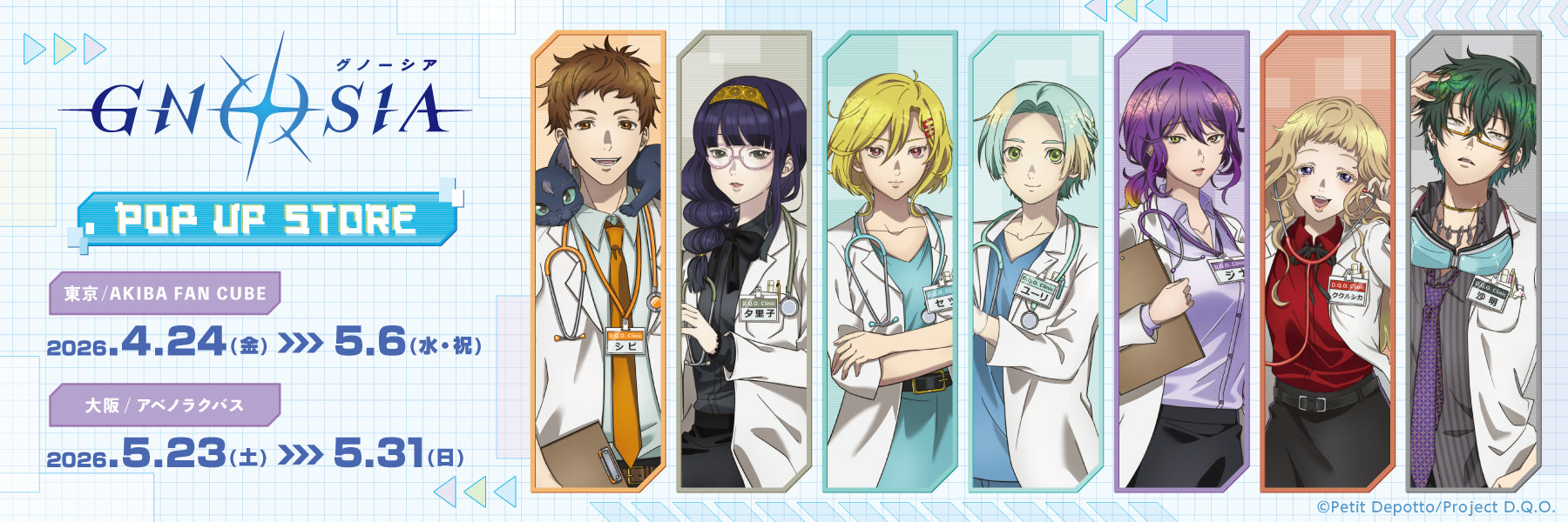 ゲーム制作サークル・プチデポットによるSF人狼ゲームを原作としたアニメ「グノーシア」× ココラボ (COCOLLABO)のポップアップストアが、東京(AKIBA FAN CUBE)・大阪(アベノラクバス)にて2026年4月24日〜5月31日まで開催される。