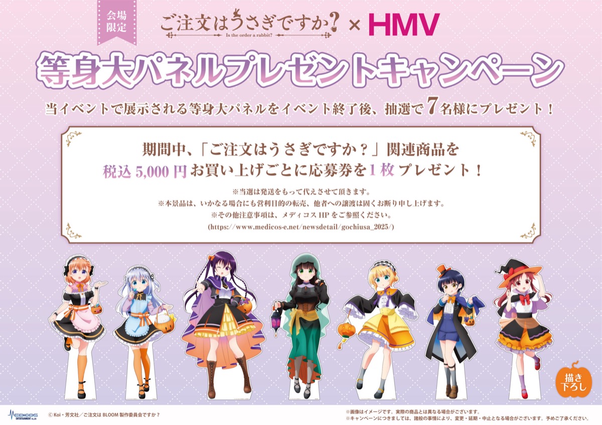 Koi先生による人気漫画を原作としたアニメ「ご注文はうさぎですか?」のポップアップストアが、HMV&BOOKS SHIBUYAにて2025年10月24日〜11月9日まで開催される。