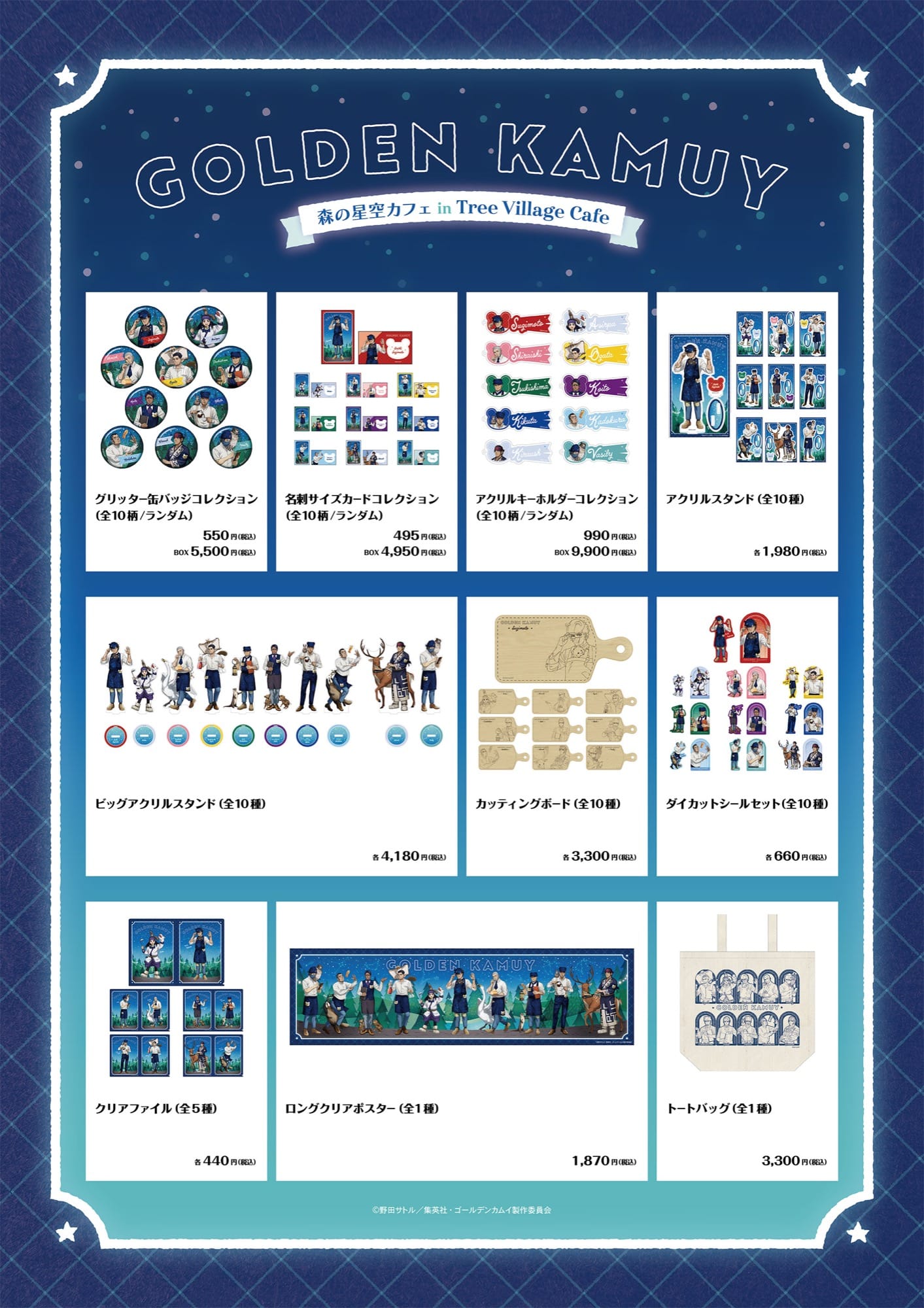 「ゴールデンカムイ × ツリービレッジ」コラボでは、森の星空カフェをテーマにした限定のコラボフードや、描き下ろしイラストグッズが登場。先行してグッズ情報が解禁!