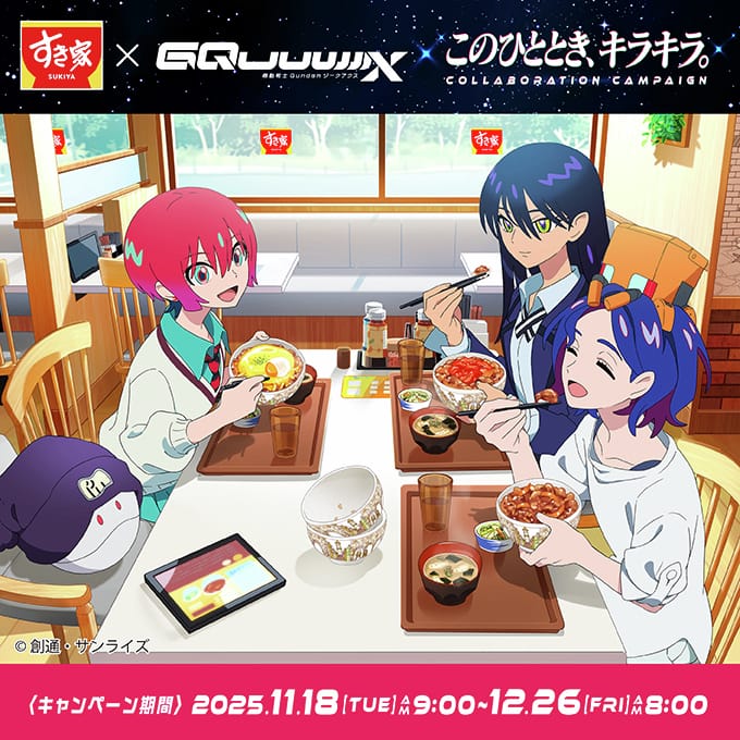 2025年11月18日より全国のすき家にて、「機動戦士Gundam GQuuuuuuX」コラボキャンペーンを実施。
