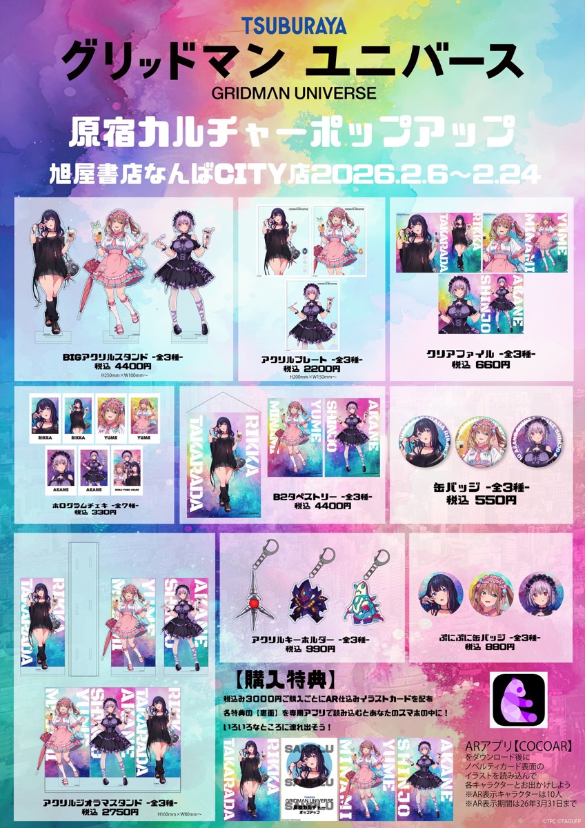 円谷プロとTRIGGER (トリガー) によるアニメ映画「グリッドマン ユニバース」のポップアップストアが、旭屋書店 なんばCITY店にて2026年2月6日〜2月24日まで開催される。