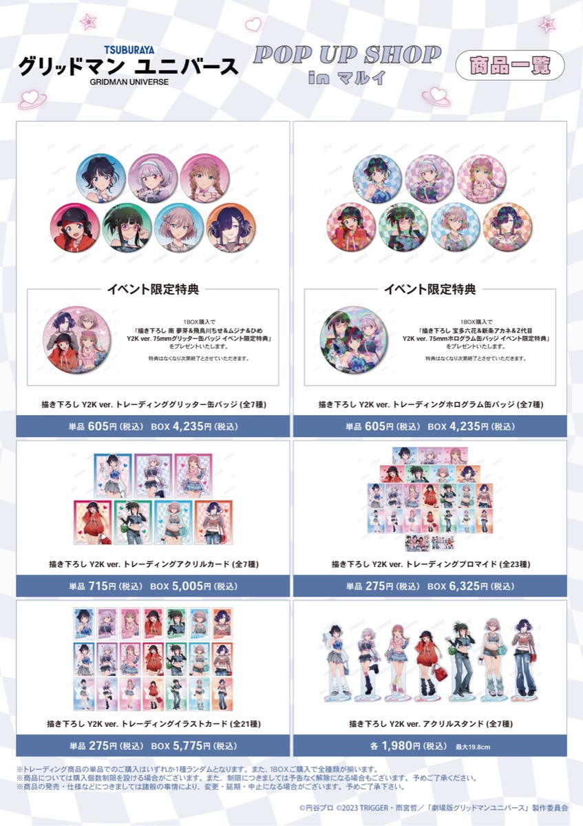 アニメ「グリッドマンユニバース」ポップアップストアでは、イベント限定の「Y2K」をコンセプトにした新規描き下ろしイラストを使用した新作グッズが多数販売される。