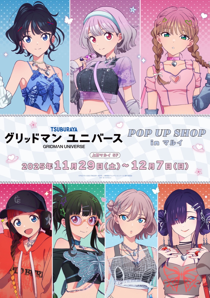 円谷プロとTRIGGER (トリガー) が贈る完全オリジナルアニメ映画「グリッドマンユニバース」のポップアップストアが、上野マルイにて2025年11月29日〜12月7日まで開催される。