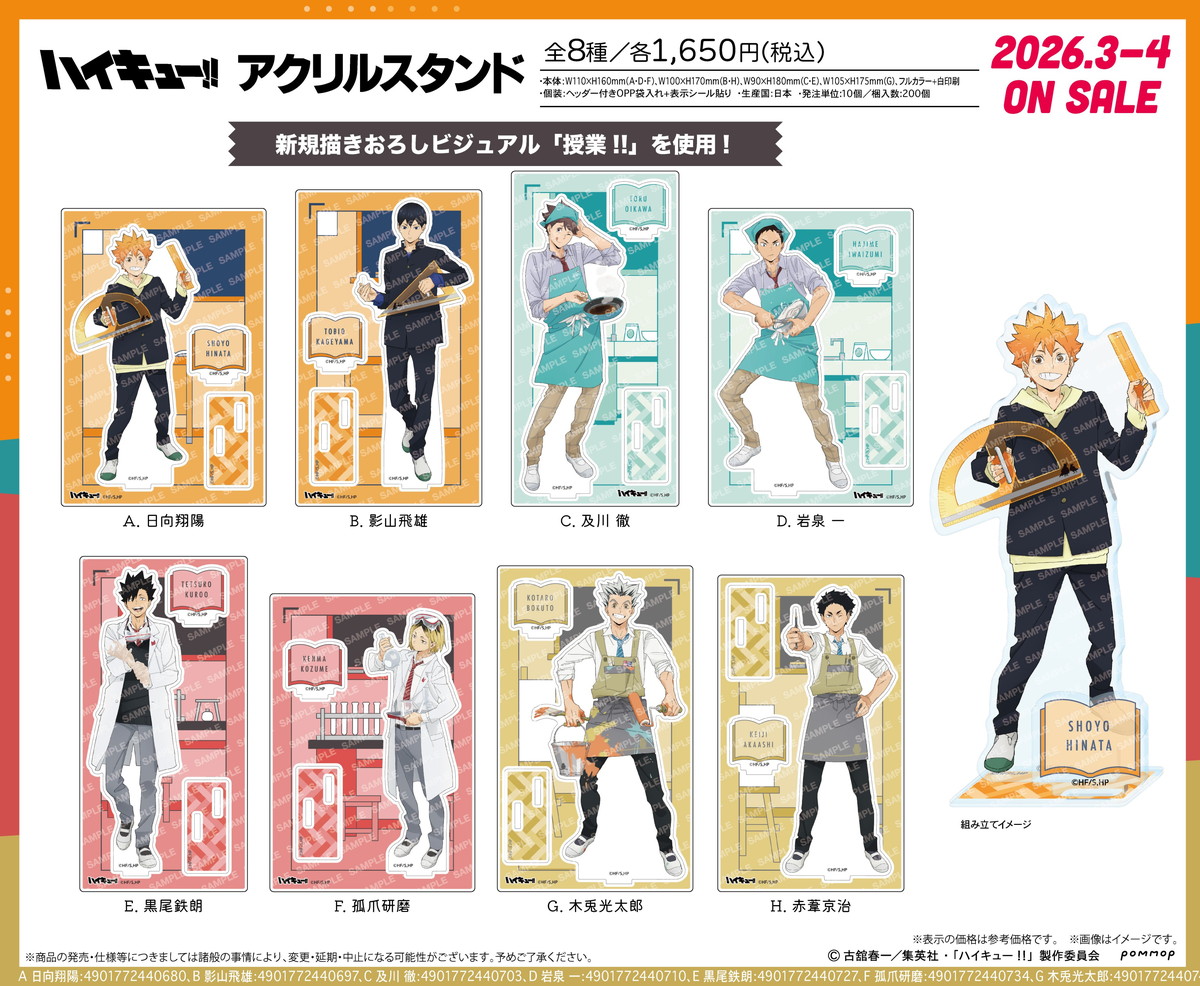 ハイキュー!!「授業!!」をテーマとした「アクリルスタンド」や「ミニ学習帳セット」など新作グッズラインナップ