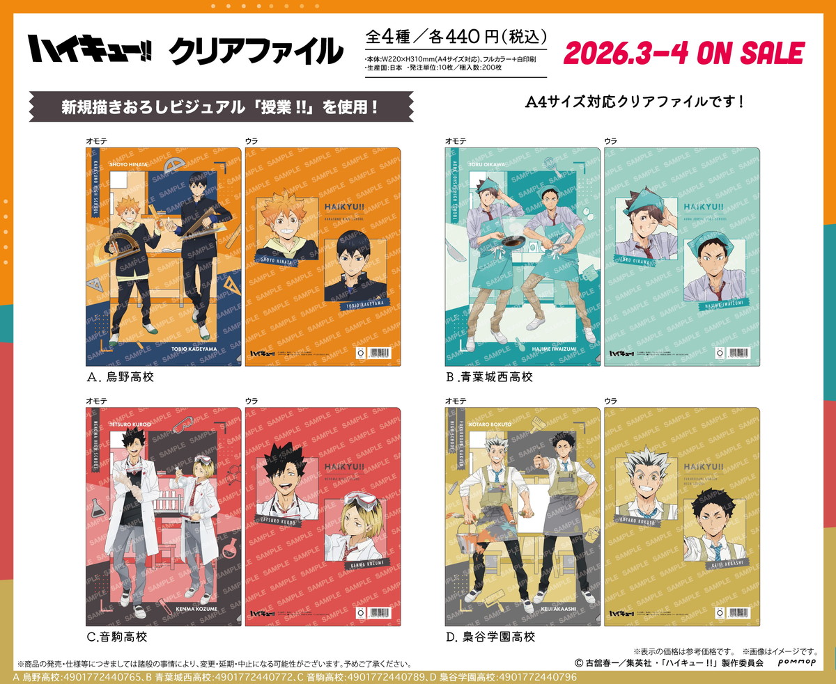 古舘春一先生による大人気バレーボール漫画を原作としたテレビアニメ「ハイキュー!!」から、「授業!!」をテーマとする描き下ろしグッズが2026年3月に発売される。