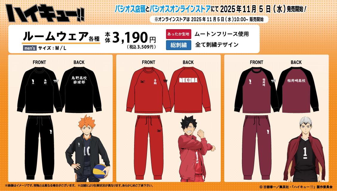 ハイキュー!! × パシオス 11月5日よりルームウェア登場!