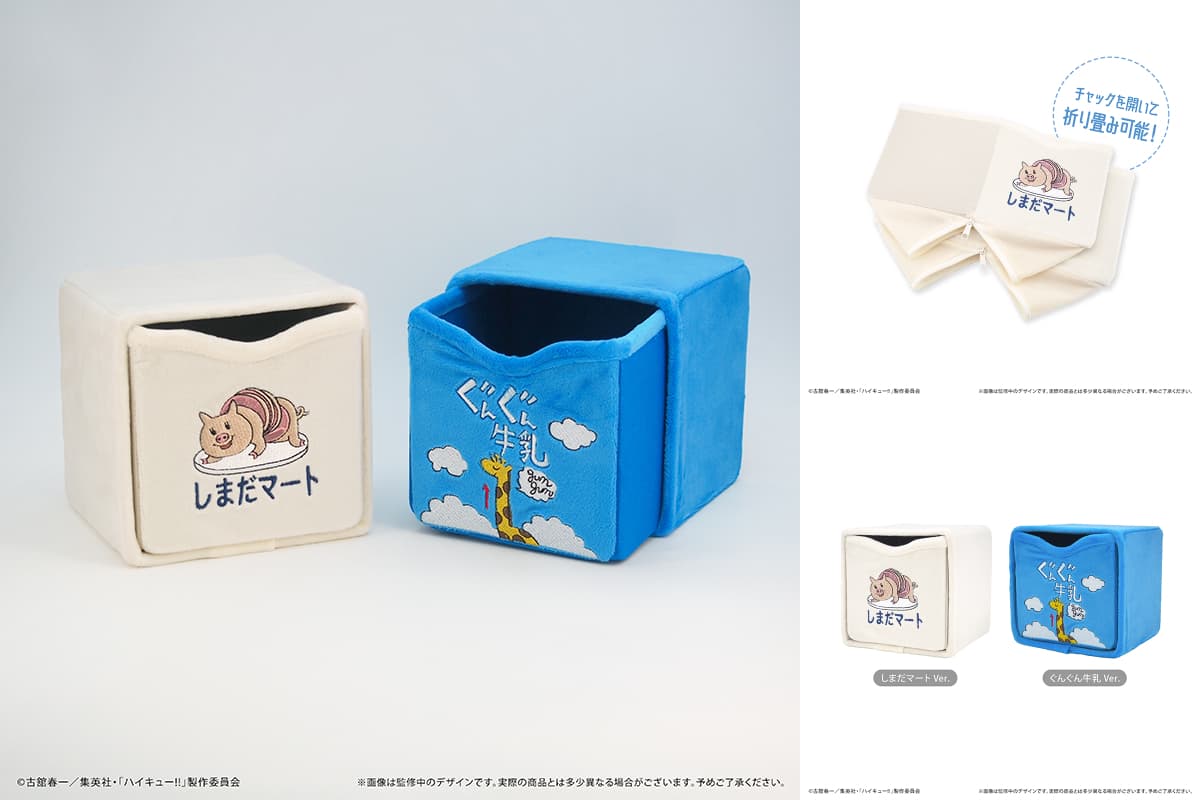 「しまだマート」と「ぐんぐん牛乳」を刺繍であしらった折りたたみ式の「刺繍チェスト Vol.1」は5月下旬に登場。さらに、ヒナガラス・カゲガラスのVol.2も同時に展開される。