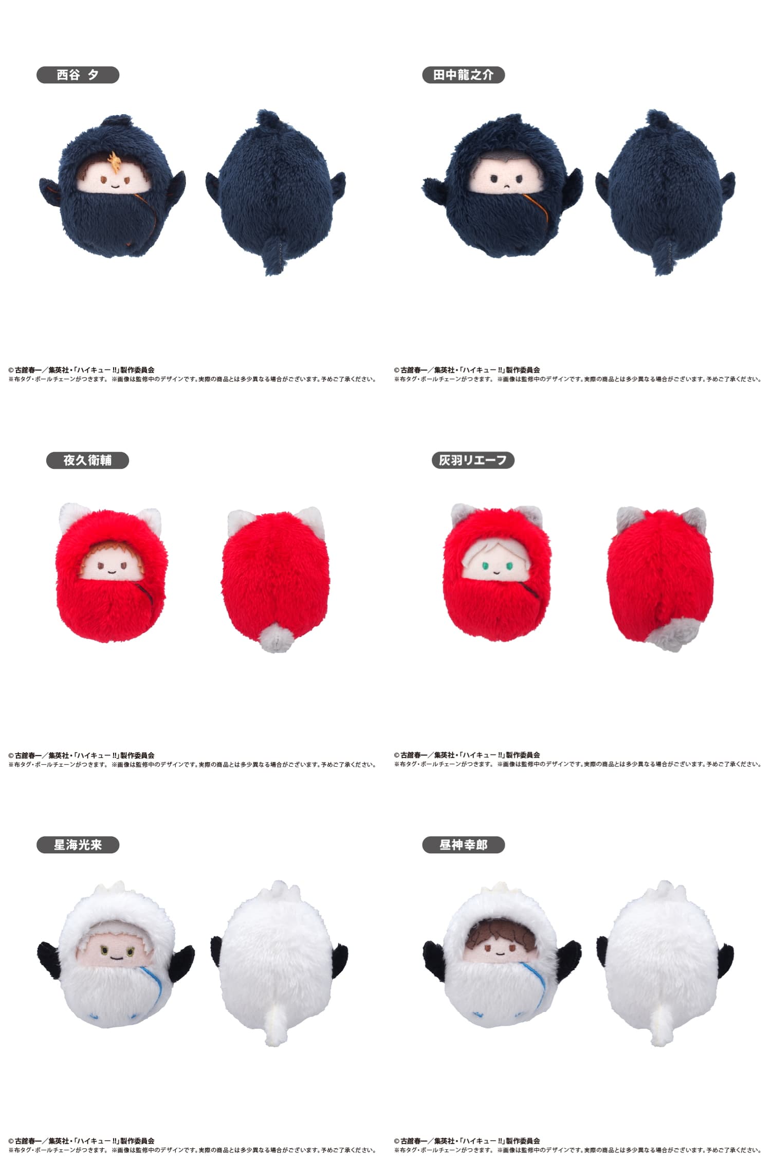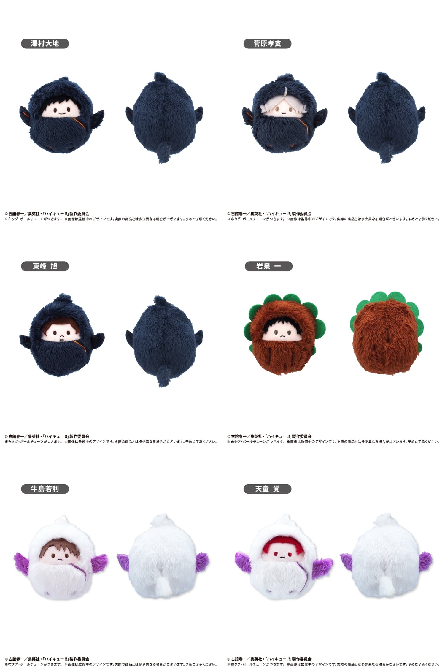 また、くるみたぴぬい第3弾には澤村 大地、菅原 孝支、東峰 旭、岩泉 一、牛島 若利、天童 覚。第4弾には西谷 夕、田中 龍之介、夜久 衛輔、灰羽 リエーフ、星海 光来、昼神 幸郎が登場。1BOXで全6種がそれぞれコンプリートできる仕様となっている。