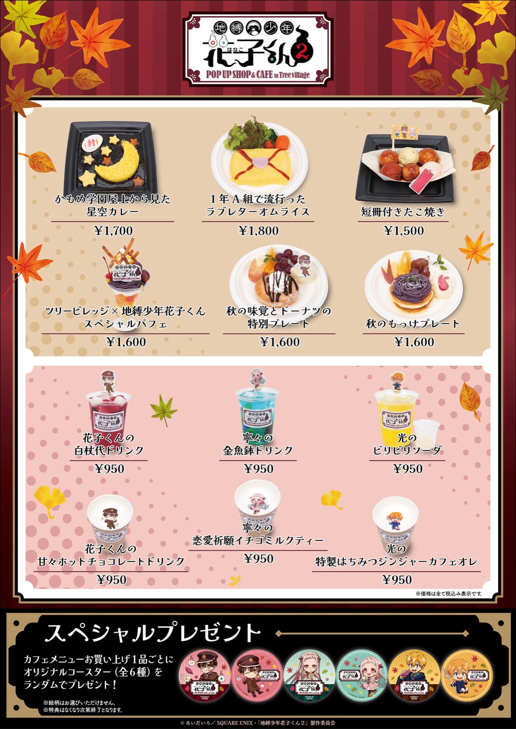 地縛少年花子くん2 × ツリービレッジのメニュー