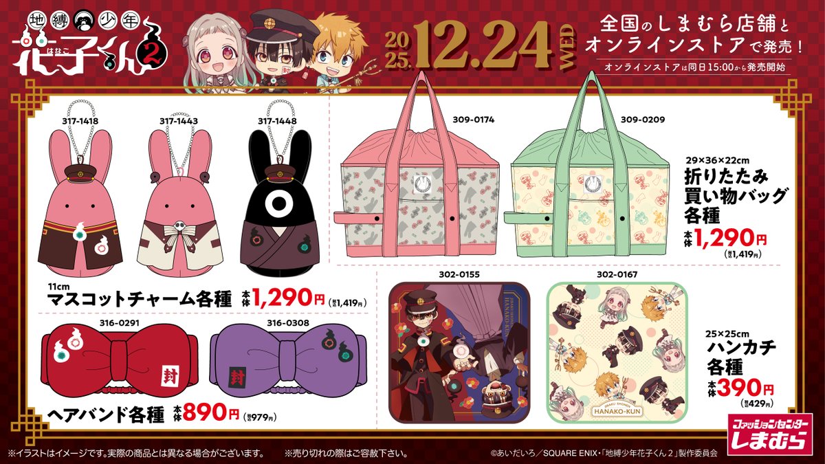 オンラインストアは同日15:00〜販売開始!https://t.co/DgoxZt3cnA #花子くん #花子くんアニメ #しまむら #しまパト pic.twitter.com/yF2CgszYUO— ファッションセンターしまむら (@shimamura_gr) December 21, 2025