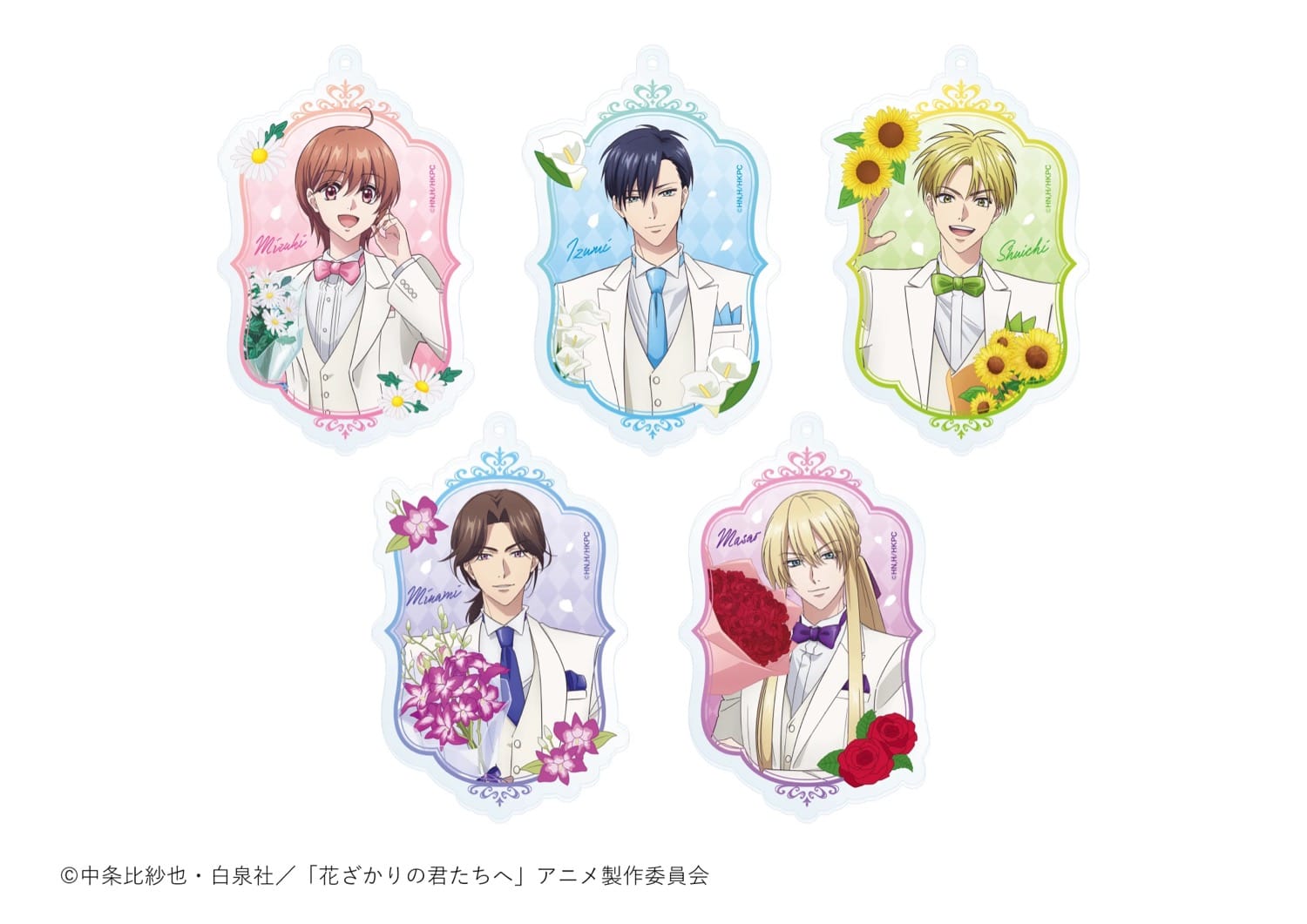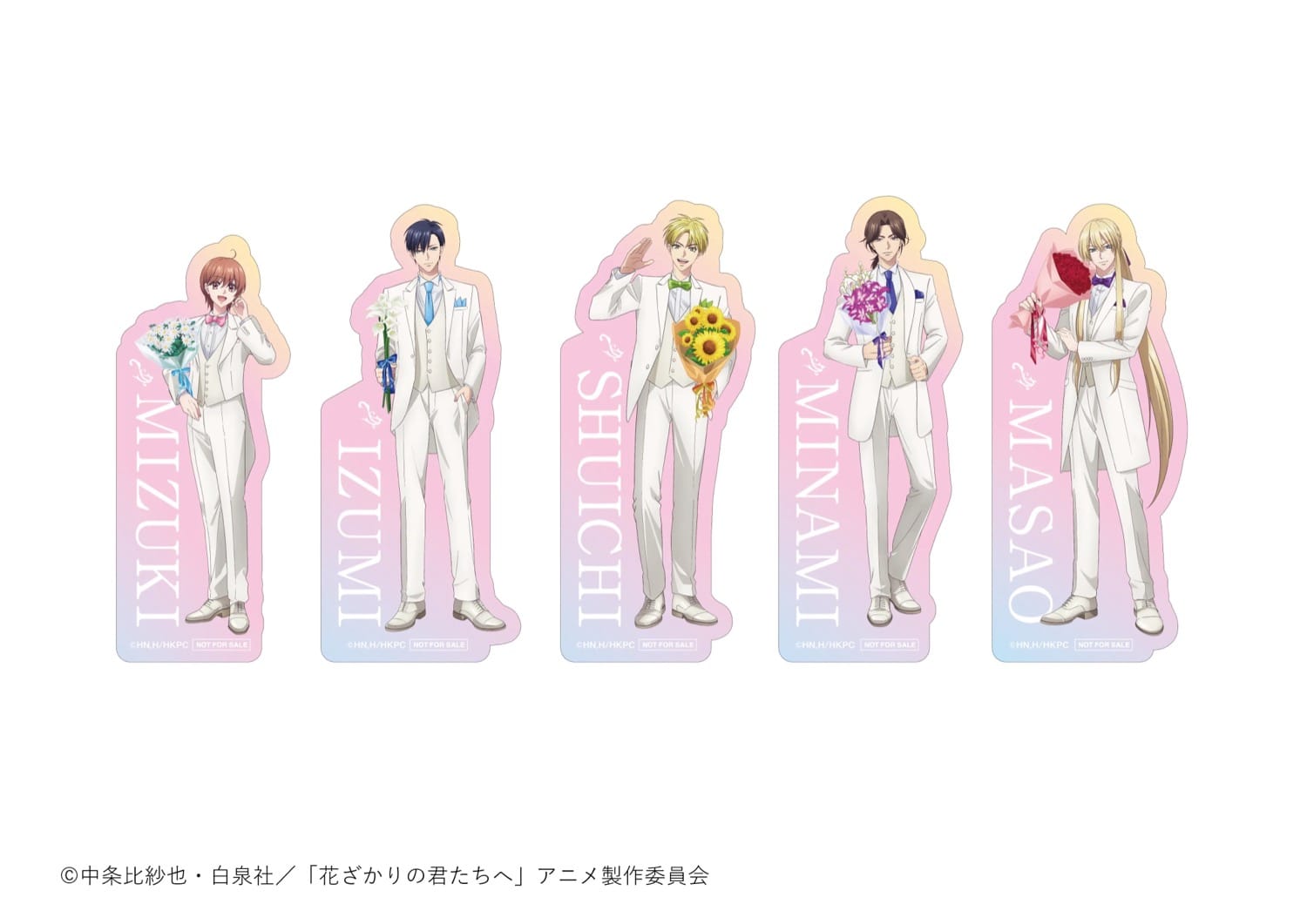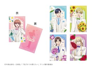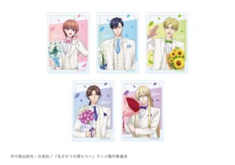 さらに、フォーマルな装いで花束を持った瑞稀、佐野、中津ら人気キャラクター達を描き下ろした新規イラストの「アクリルスタンド」「クリアファイル」などのコラボカフェ限定グッズも発売!