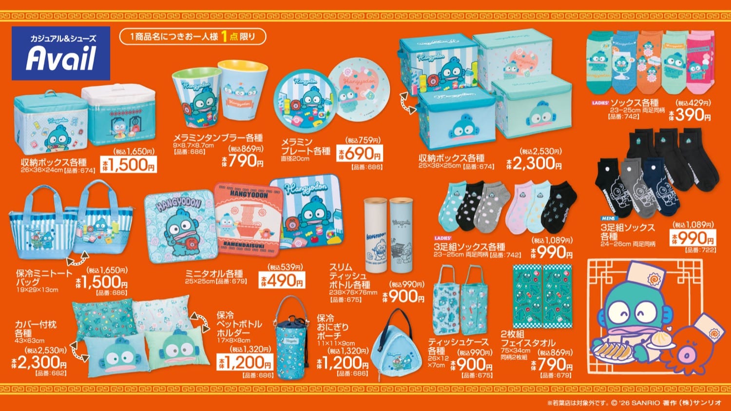ハンギョドン × Avail(アベイル)全国のグッズラインナップ