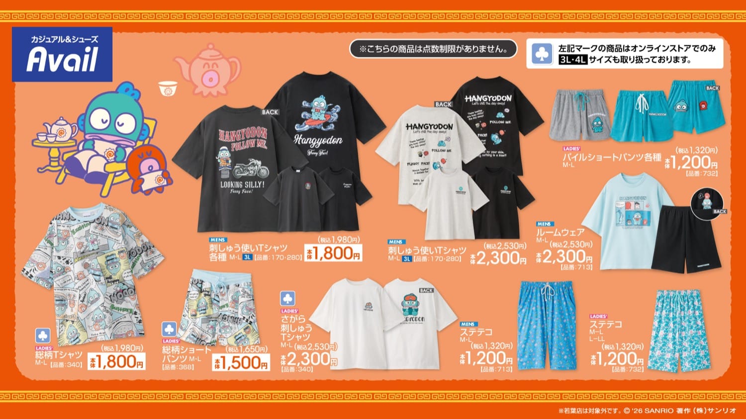 世代を超えて愛されるサンリオの大人気キャラクター「ハンギョドン」のバースデーを記念し、しまむらグループが展開するカジュアルブランド「Avail (アベイル)」全国にて、2026年2月28日よりコラボグッズが発売される。
