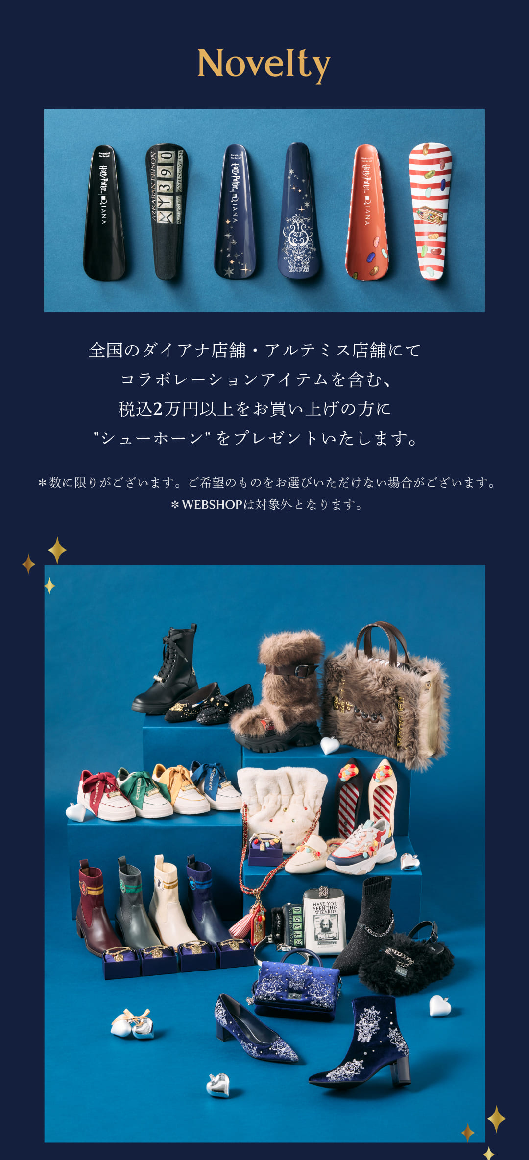 さらに、全国のダイアナ店舗・アルテミス店舗にて、コラボレーションアイテムを含む20,000円(税込)以上購入すると特典として「シューホーン」をプレゼント!