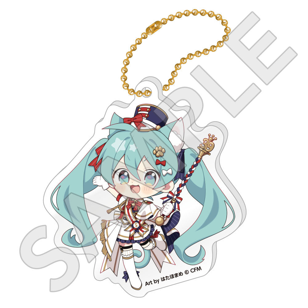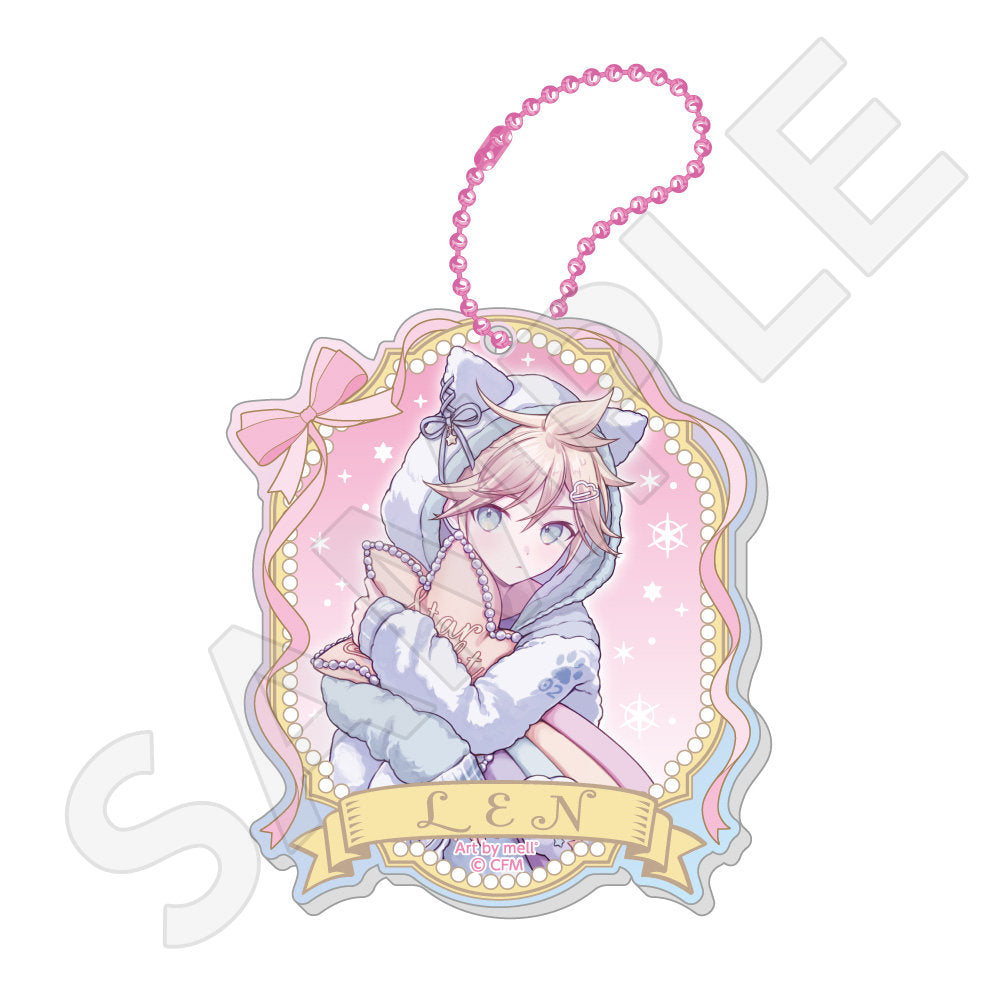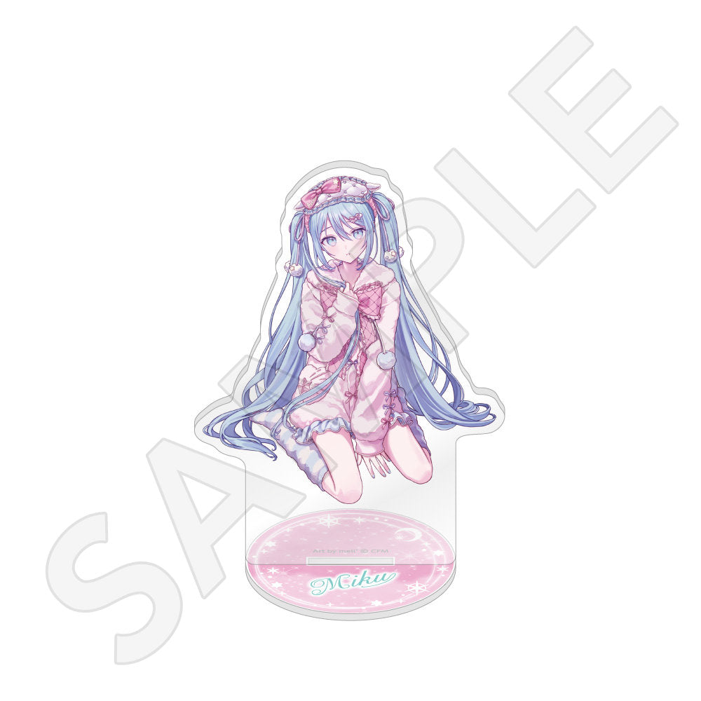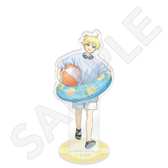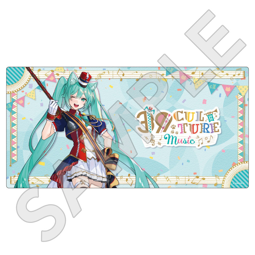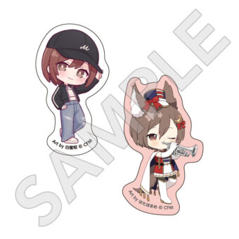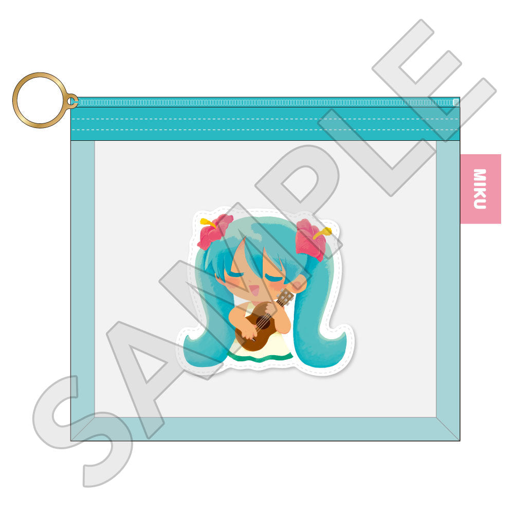 水色コーデで揃えたビジュアルや、演奏する初音ミク・鏡音リン・鏡音レンたちのイラストを使用した「トレーディング大き目ホログラム缶バッジ」「トレーディング箔押しカード」「FASHION アクリルスタンド」「MUSIC クリアファイル」などがラインナップする。
