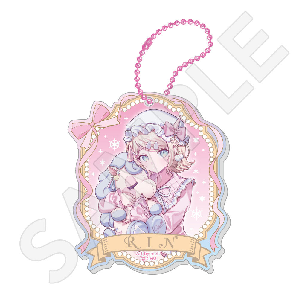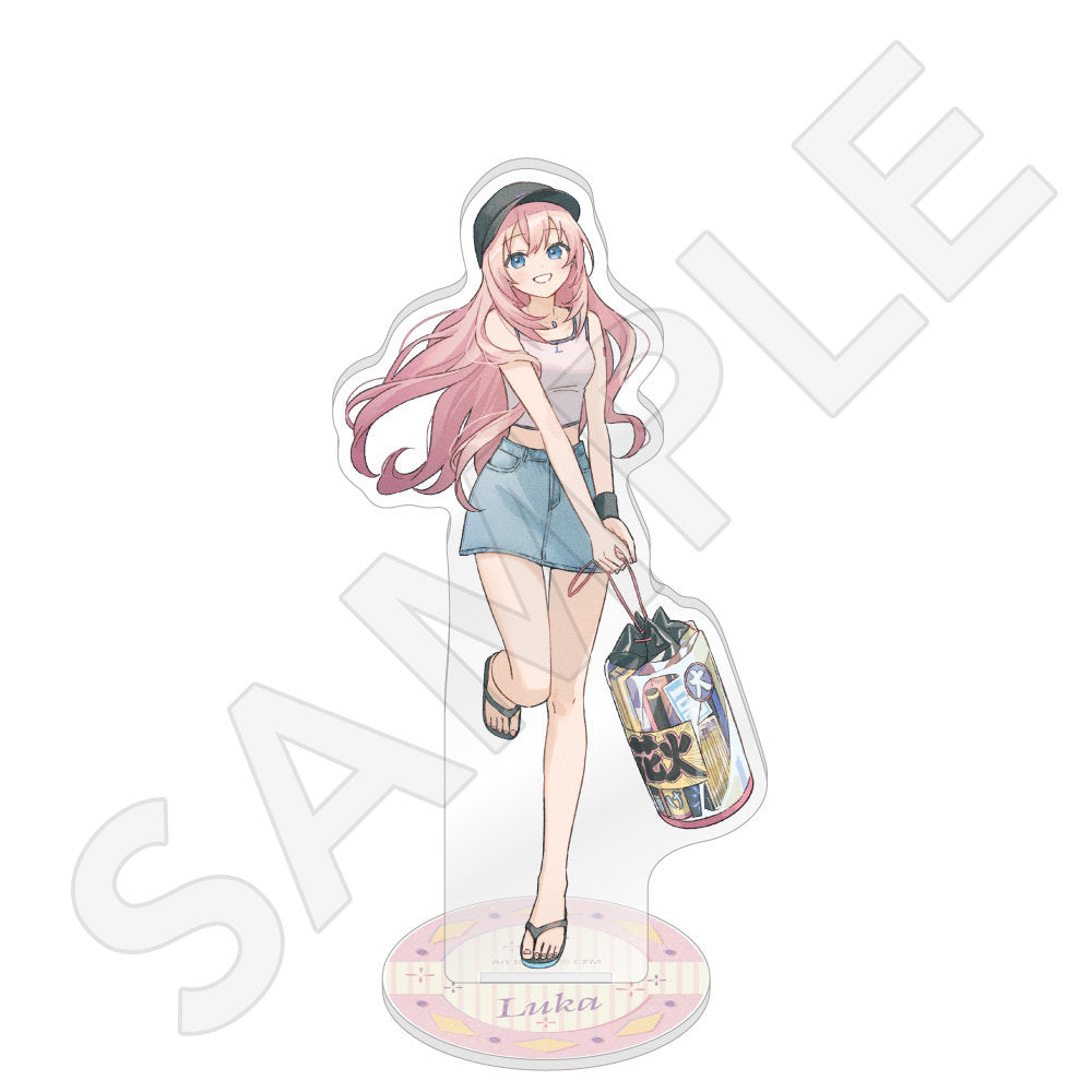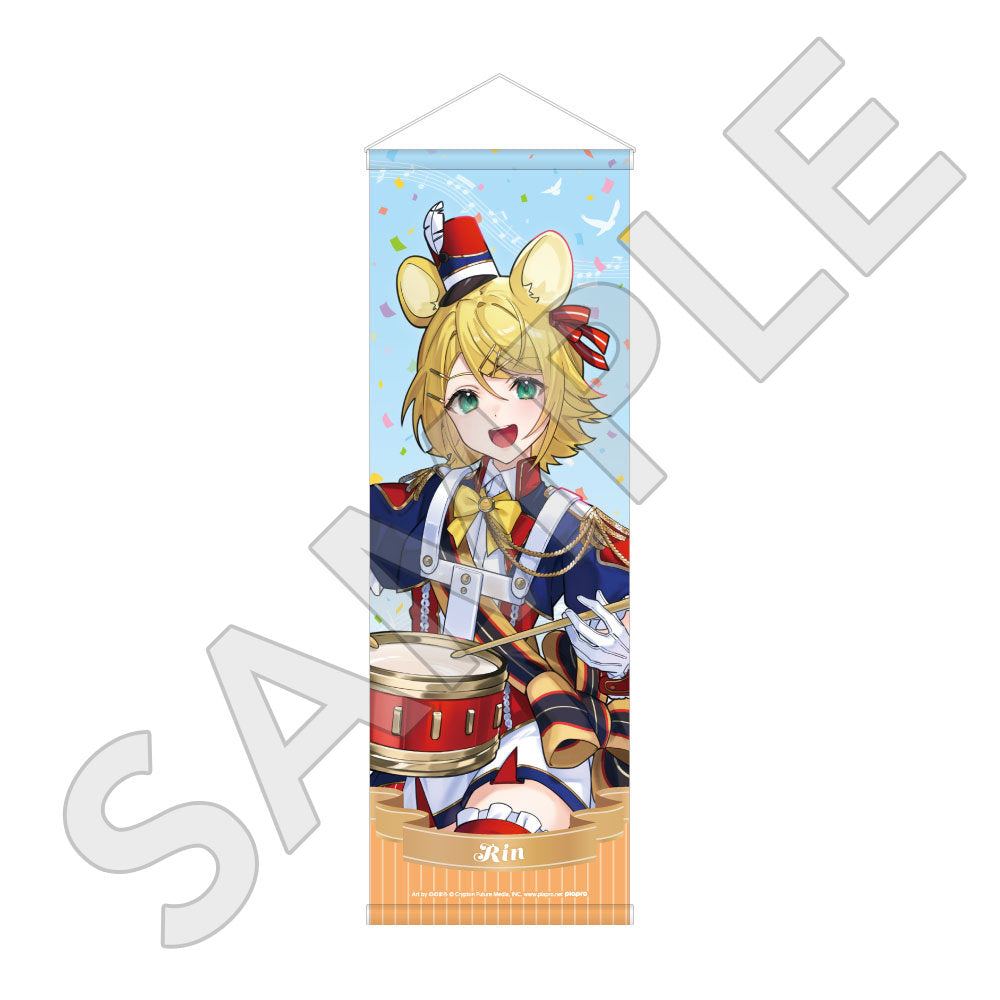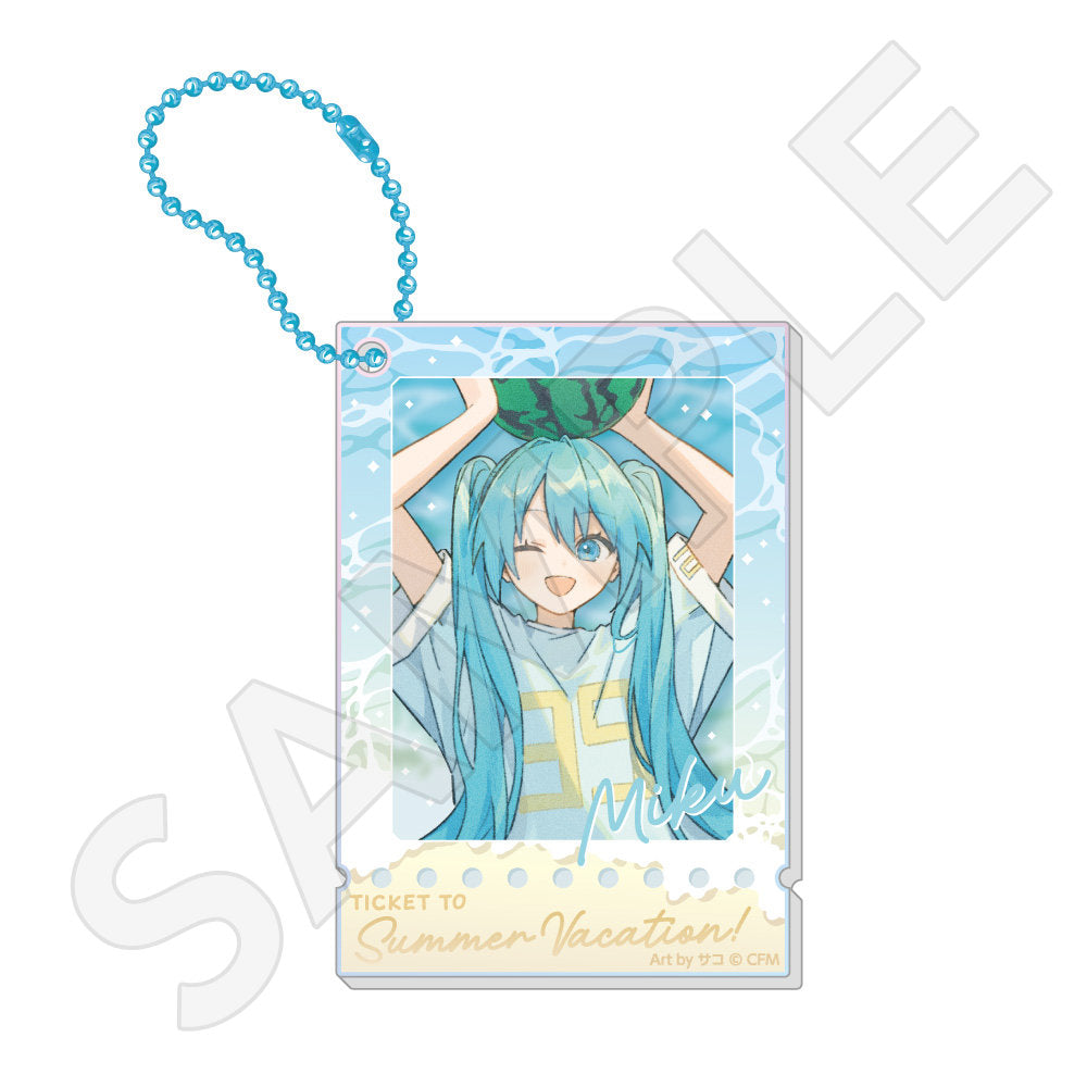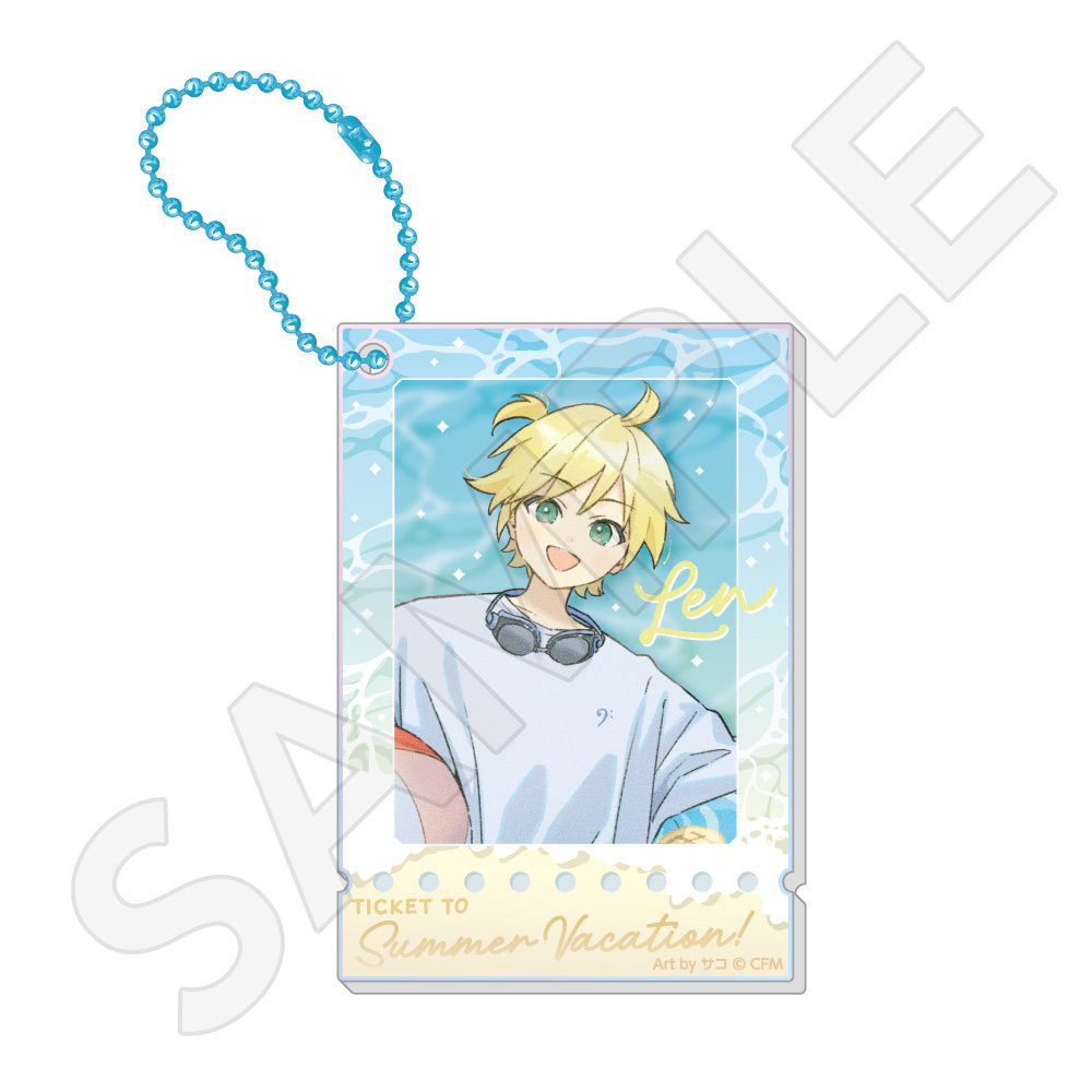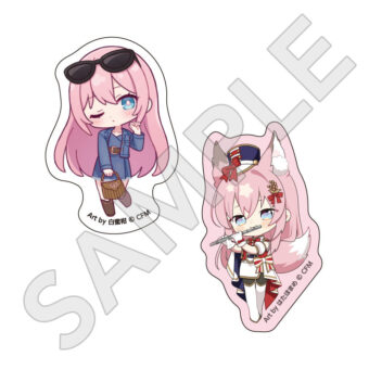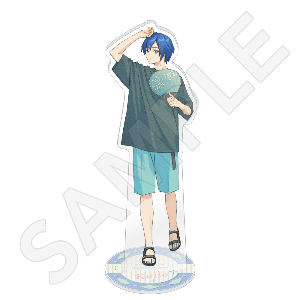 水色コーデで揃えたビジュアルや、演奏する初音ミク・鏡音リン・鏡音レンたちのイラストを使用した「トレーディング大き目ホログラム缶バッジ」「トレーディング箔押しカード」「FASHION アクリルスタンド」「MUSIC クリアファイル」などがラインナップする。