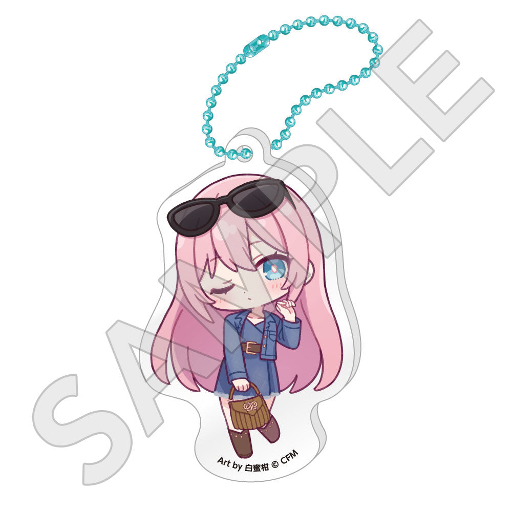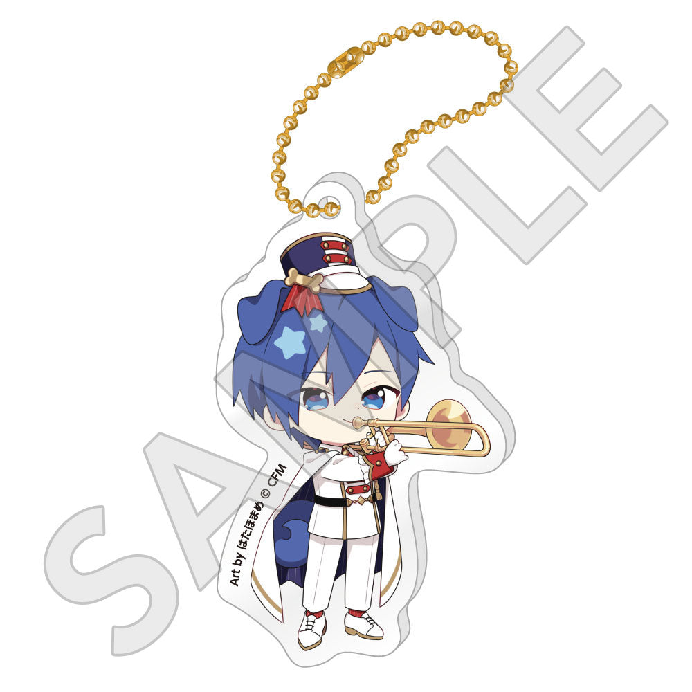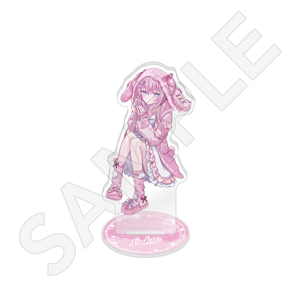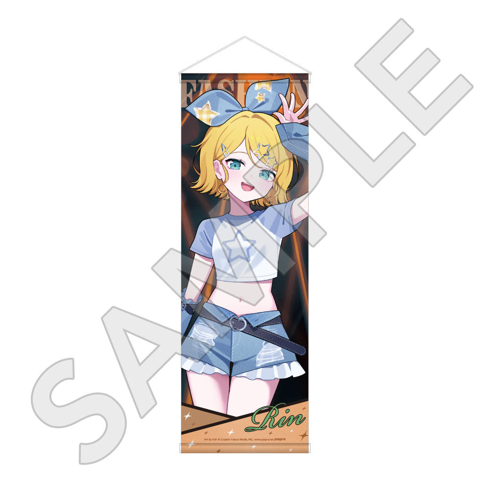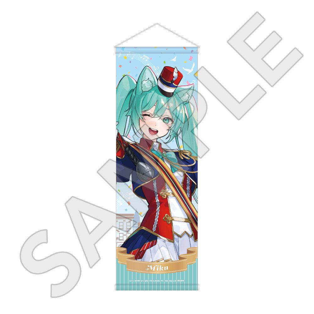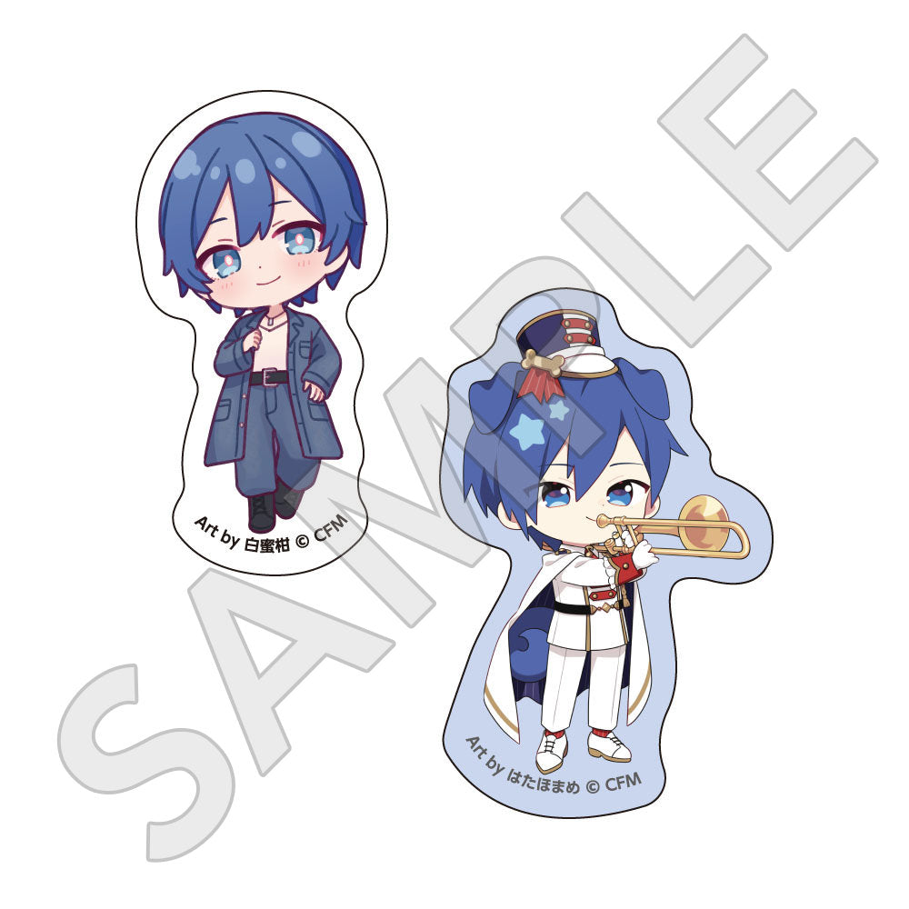 水色コーデで揃えたビジュアルや、演奏する初音ミク・鏡音リン・鏡音レンたちのイラストを使用した「トレーディング大き目ホログラム缶バッジ」「トレーディング箔押しカード」「FASHION アクリルスタンド」「MUSIC クリアファイル」などがラインナップする。