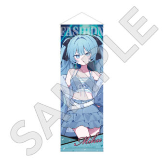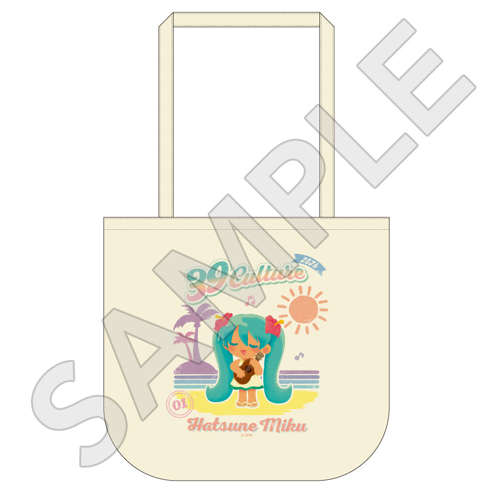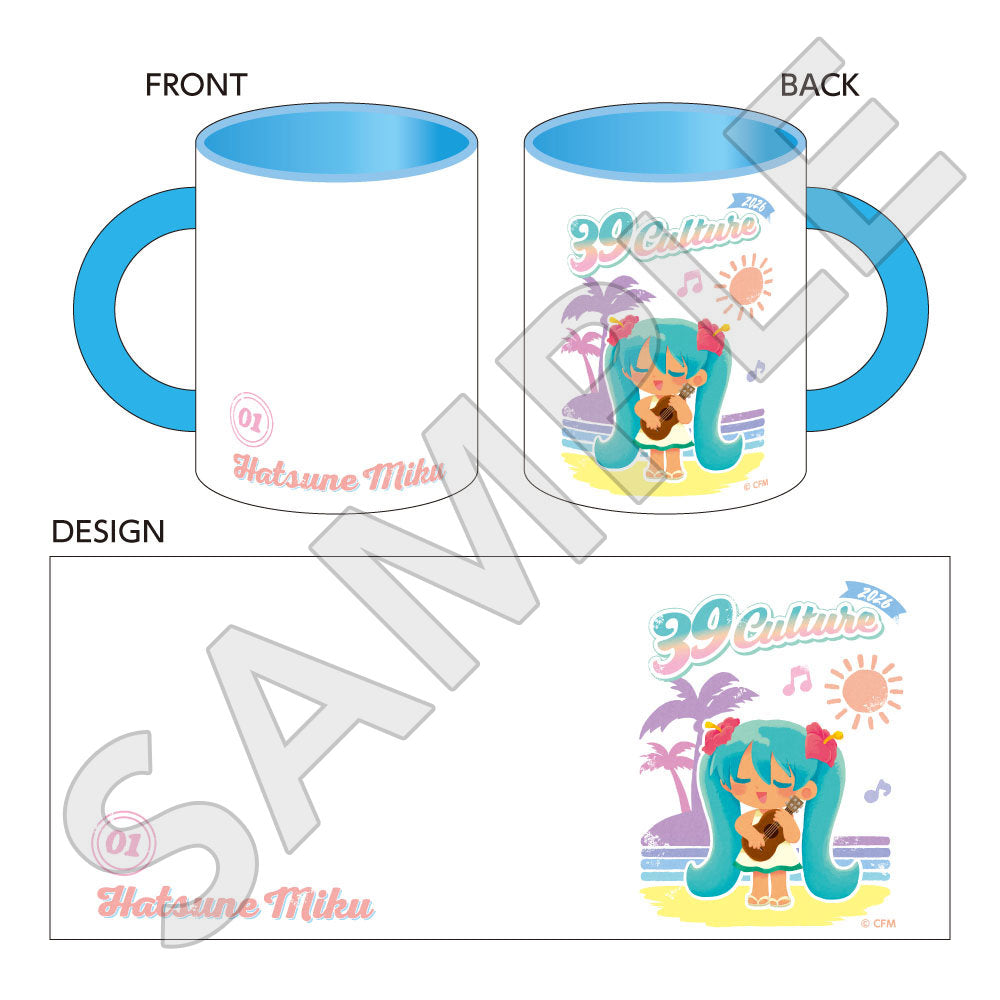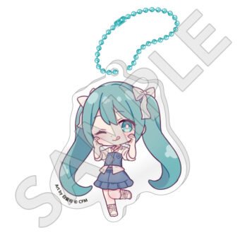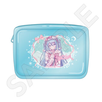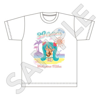 「初音ミク」ポップアップストアでは、水色を基調としたファッションや、ミュージックをテーマにした衣装に身を包む初音ミクの描き下ろしイラストを使用した新作グッズが多数登場。
