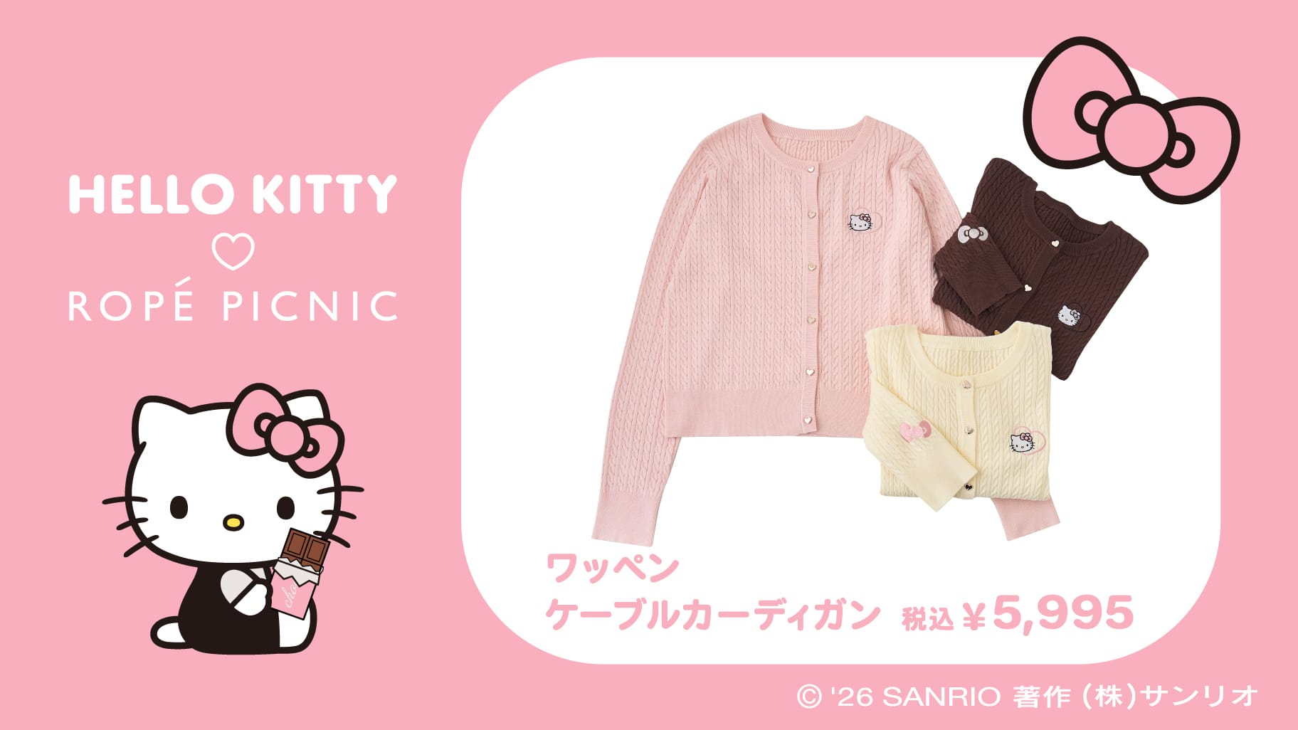 「ハローキティ × ロペピクニック」コラボ第2弾には、“LOVE MY HELLO KITTY”がテーマのカーディガンやバッグなど、バレンタインシーズンにぴったりな限定コレクションが発売!