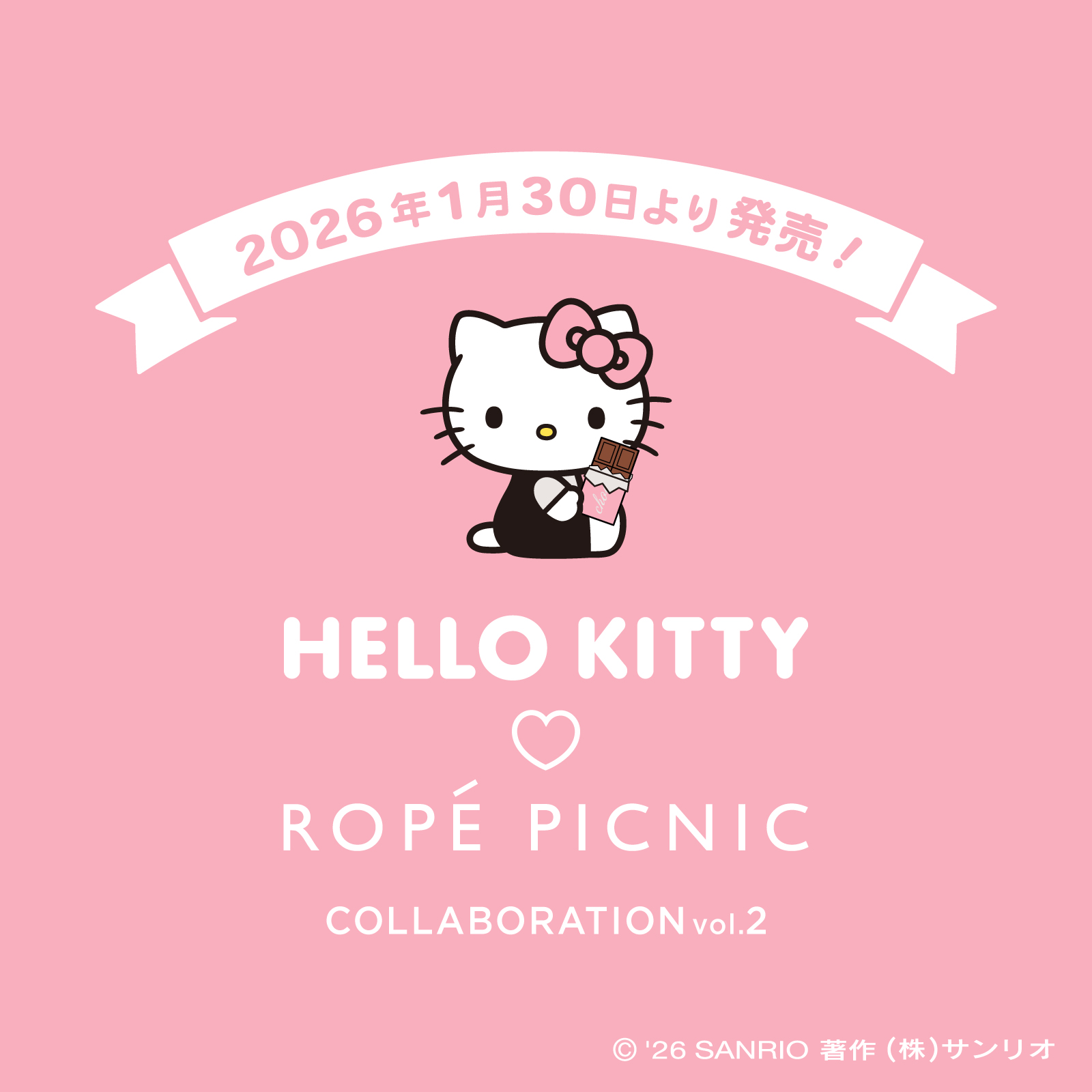 世代を超えて愛されるサンリオの人気キャラクター「ハローキティ」 × トレンドにフレンチテイストをミックスした“ちゃんと+かわいい”ブランド「ROPÉ PICNIC (ロペピクニック)」のコラボアイテム第2弾が、2026年1月30日より全国のROPÉ PICNIC店舗、J’aDoRe JUN ONLINEにて順次発売される。