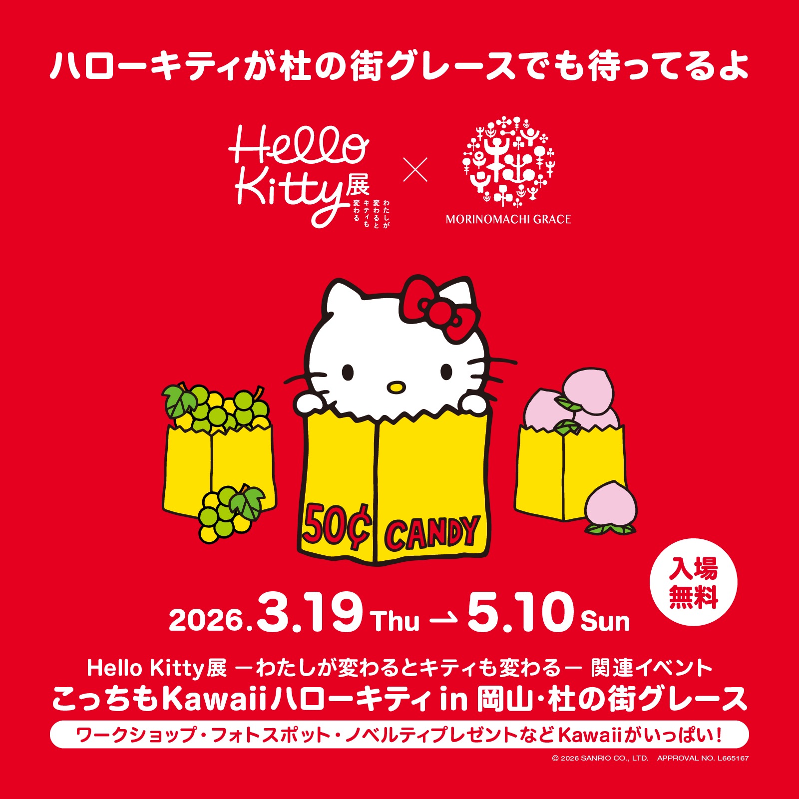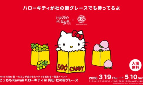 世代を超えて愛されるサンリオのハローキティ × 杜の街グレース岡山にて、2026年3月19日〜5月10日までHello Kitty展 関連イベント「こっちもKawaiiハローキティ」が開催される。