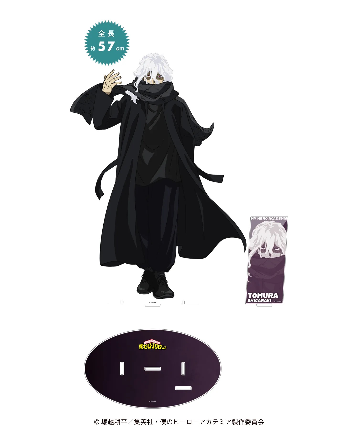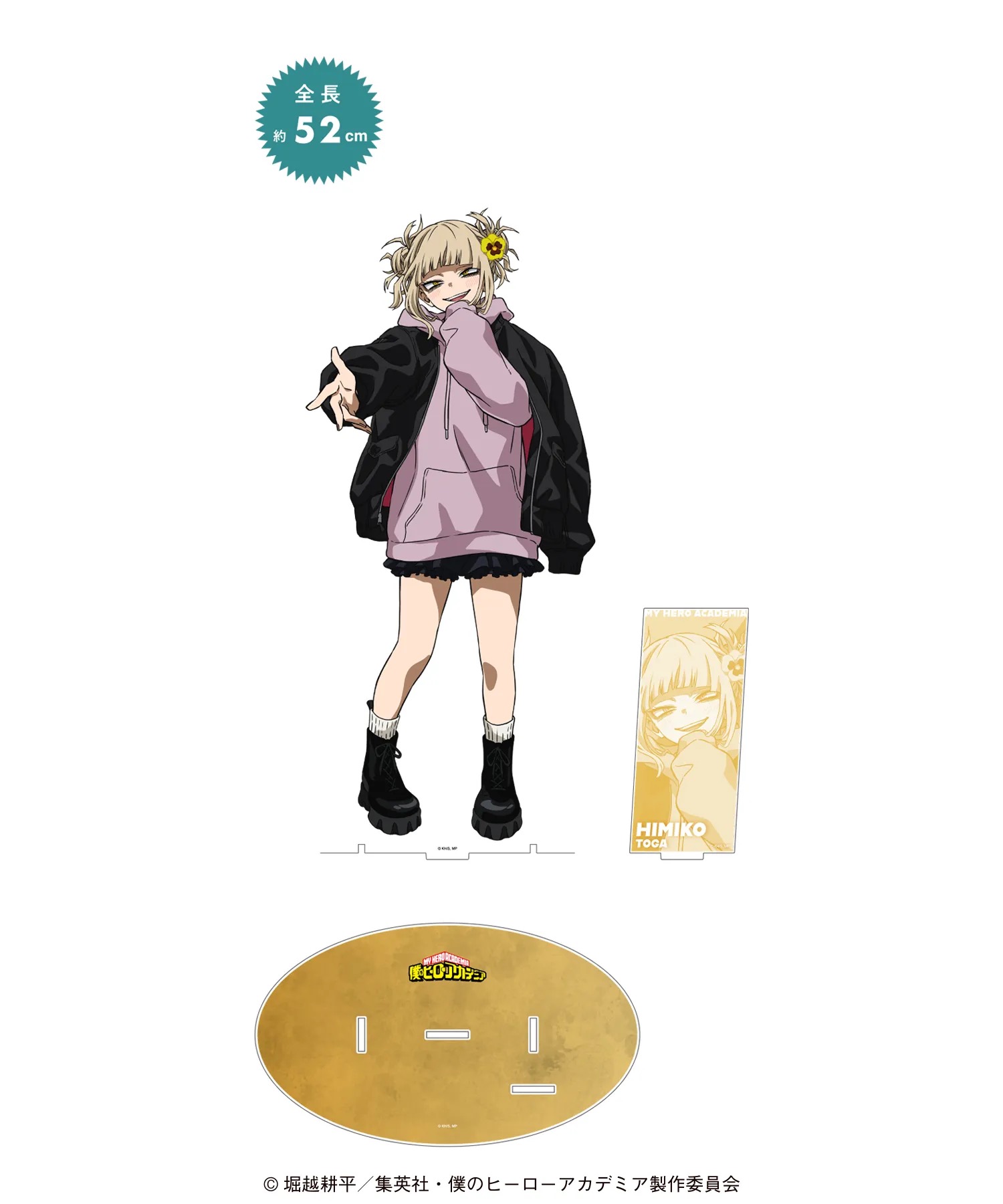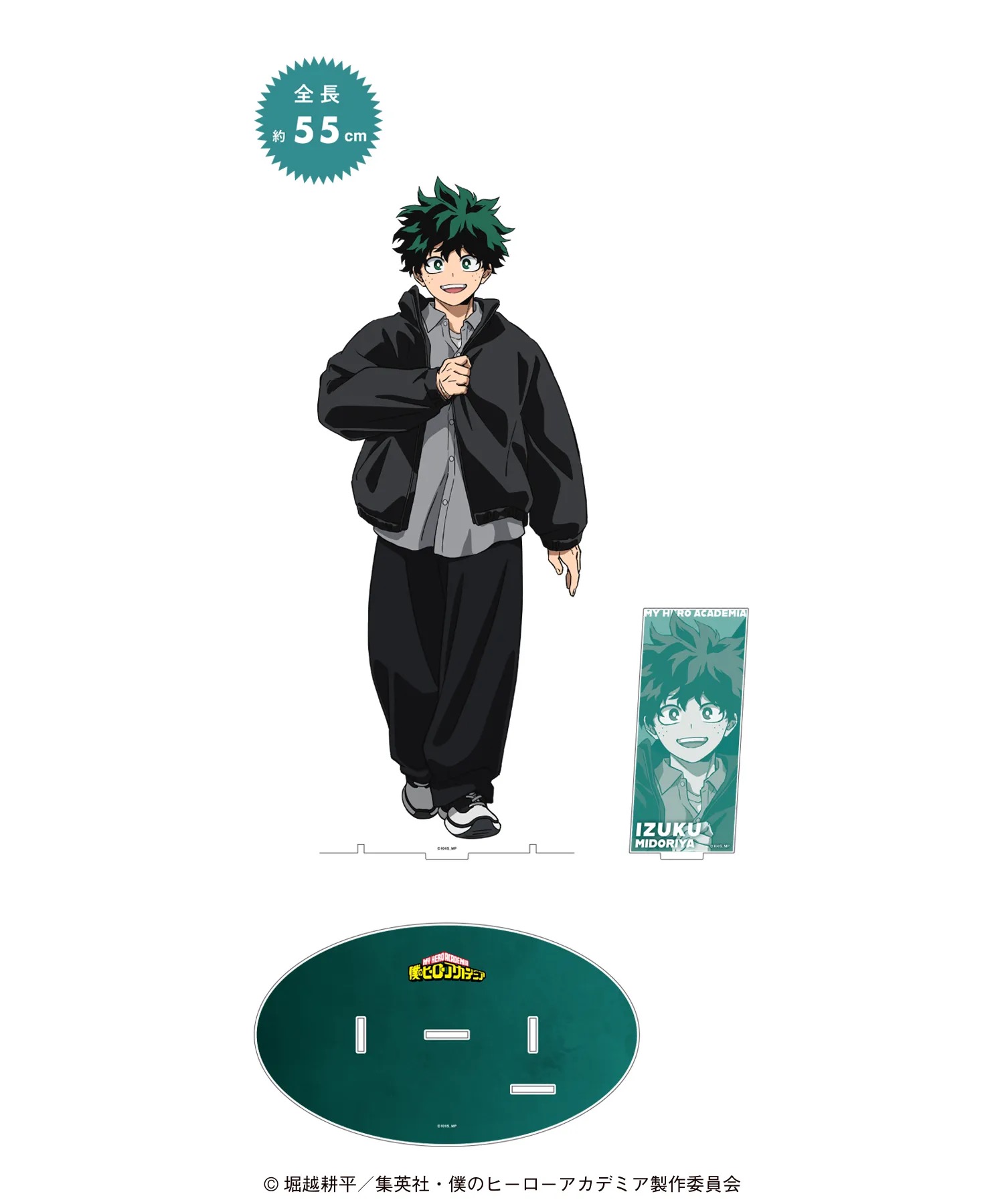 黒アウターコーデに身を包む、デク・爆豪・お茶子・死柄木・荼毘・トガたちのイラストを使用した「トレーディング カンバッジ」「トレーディング ビッグカンバッジ オーロラVer.」「トレーディング フレームマグネット」「トレーディング クリアアートカード」などがラインナップする。