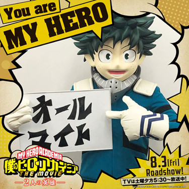「僕のヒーローアカデミア THE MOVIE ~2人の英雄(ヒーロー)~」の公開記念!!TVアニメ連動企画「You are MY HERO」キャンペーンがスタート!!You are MY HEROキャンペーンは、『自分にとっての「MY HERO」をSNSで投稿すると、TVアニメ「僕のヒーローアカデミア」放送内で紹介されるというファン参加型』のスペシャル企画となっています!!