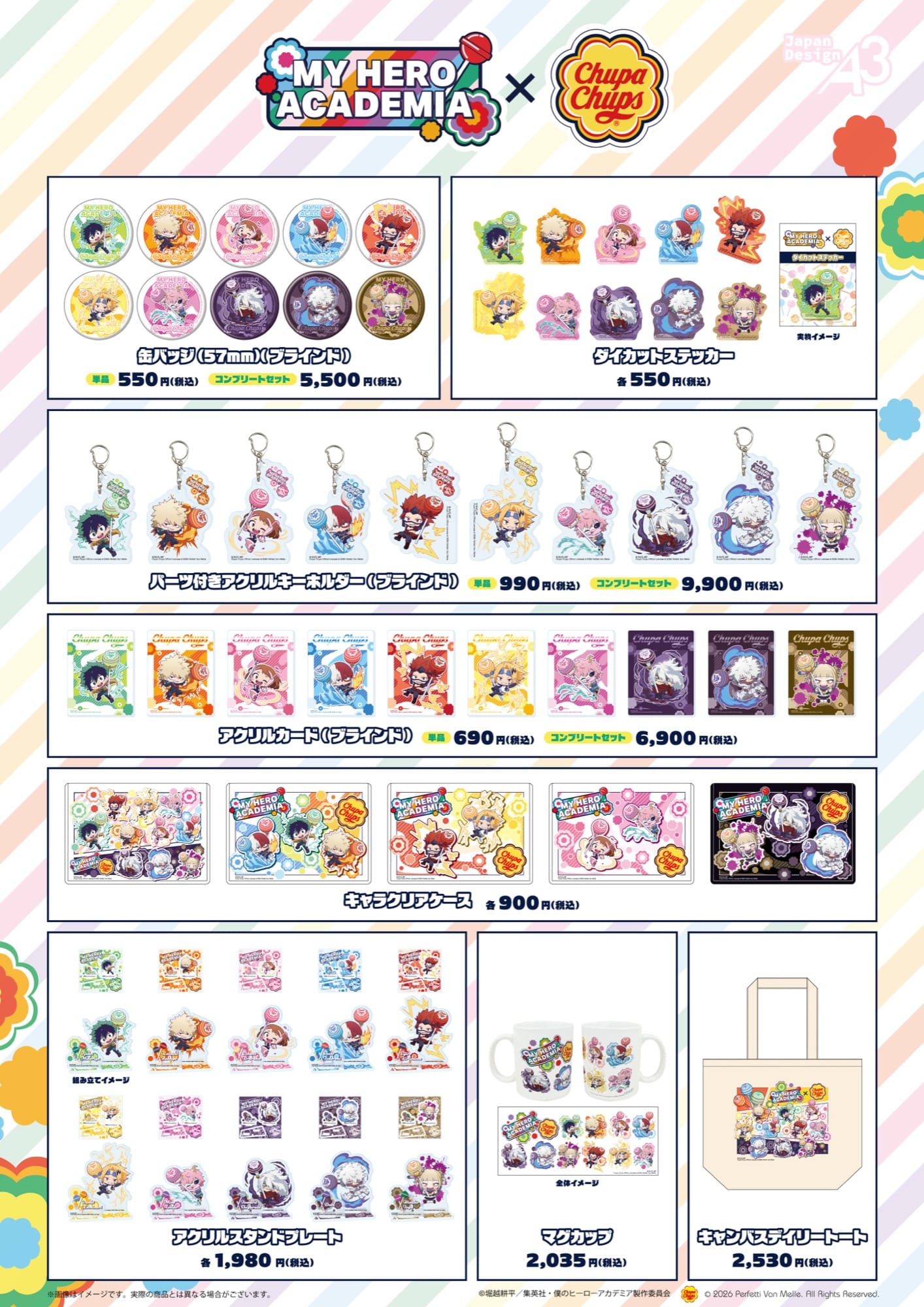 ヒロアカのヒーローとヴィランがチュッパチャプスとコラボした、ポップで可愛い描き起こしミニキャライラストをデザインした新作アイテムが多数ラインナップ!
