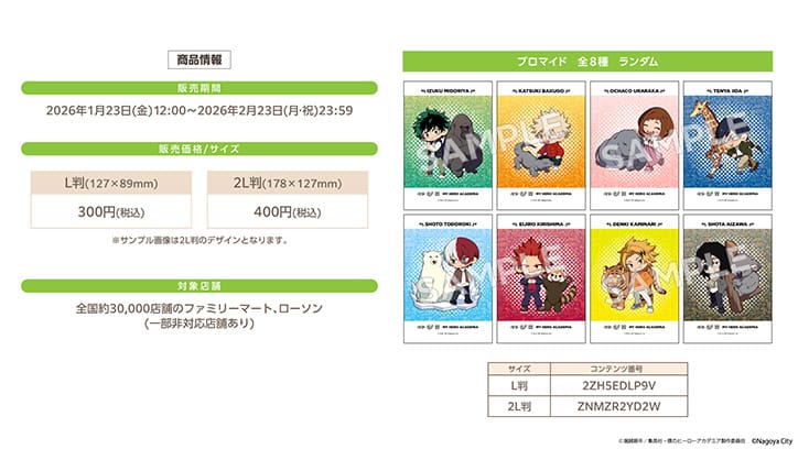 全国のコンビニエンスストア(ファミリーマート、ローソン)に設置されている、マルチコピー機からコンテンツをプリントできる「エンタメプリント」で描きおこしデザインのオリジナルブロマイドを販売!