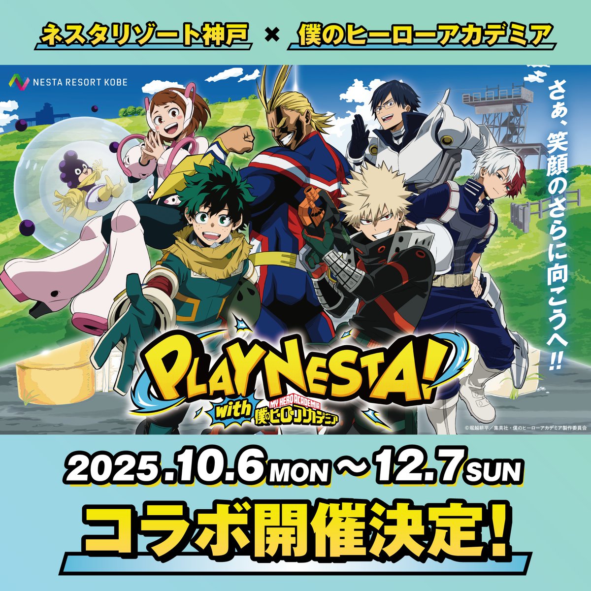 全世界累計発行部数1億部を突破した「堀越耕平」先生による大人気漫画を原作とするTVアニメ「僕のヒーローアカデミア (ヒロアカ)」× 兵庫・ネスタリゾート神戸にて、初のコラボイベント「PLAY NESTA!with 僕のヒーローアカデミア」が2025年10月6日〜12月7日まで開催される。