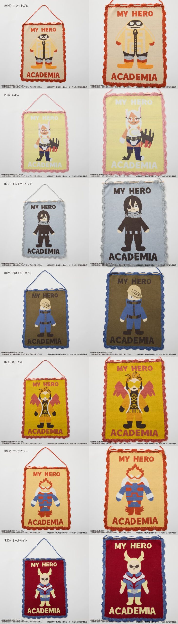 アニメ『僕のヒーローアカデミア』よりニットタペストリーが登場!プロヒーローをニットの柄で表現いたしました。