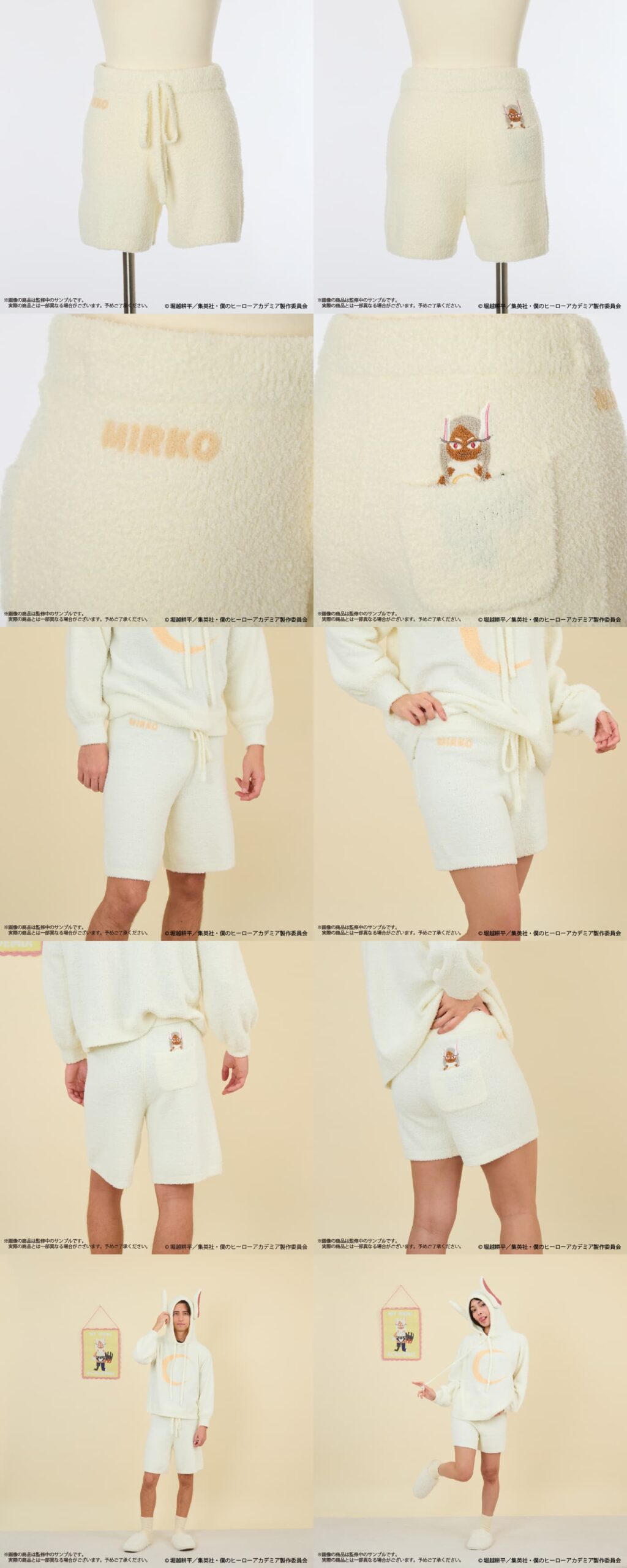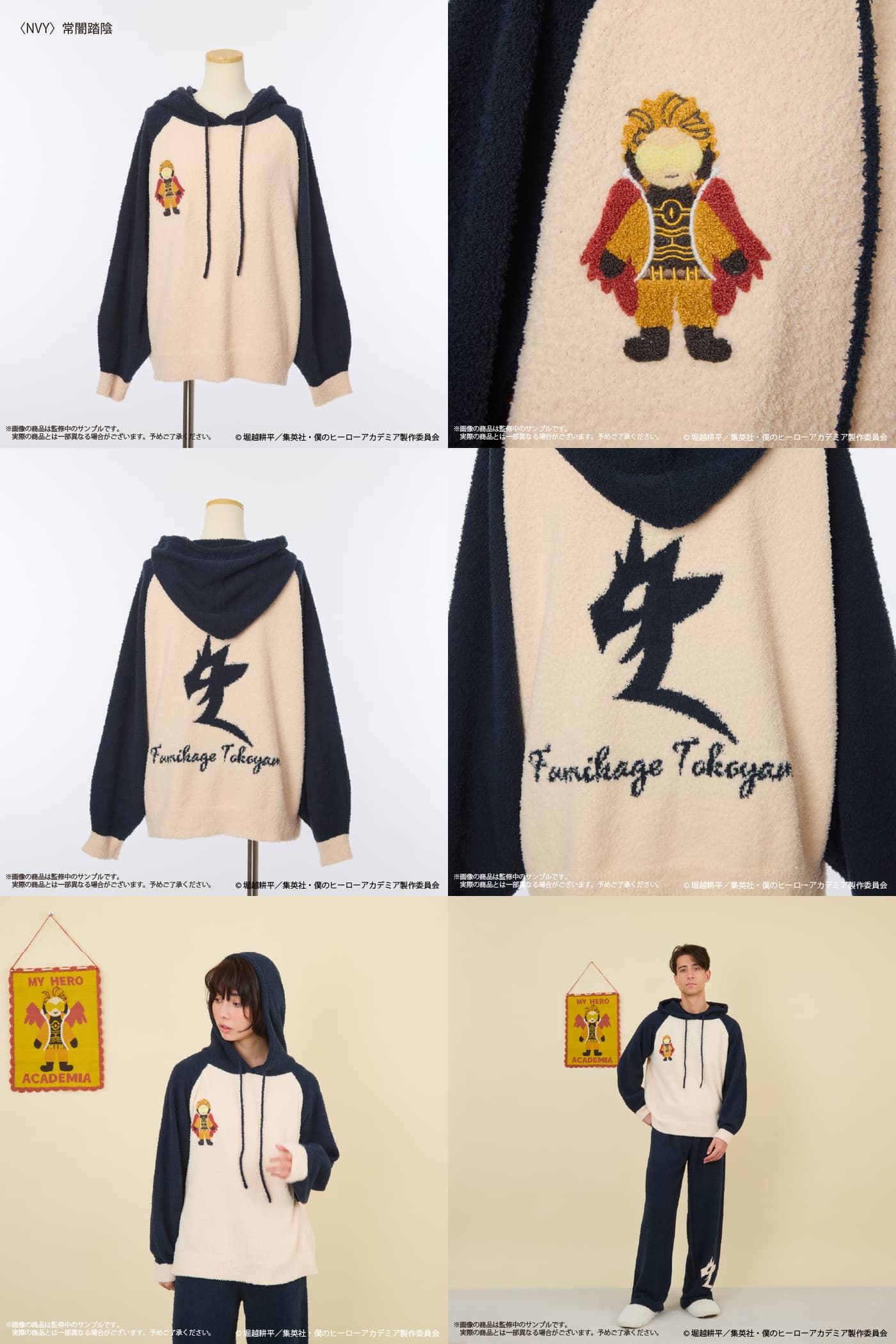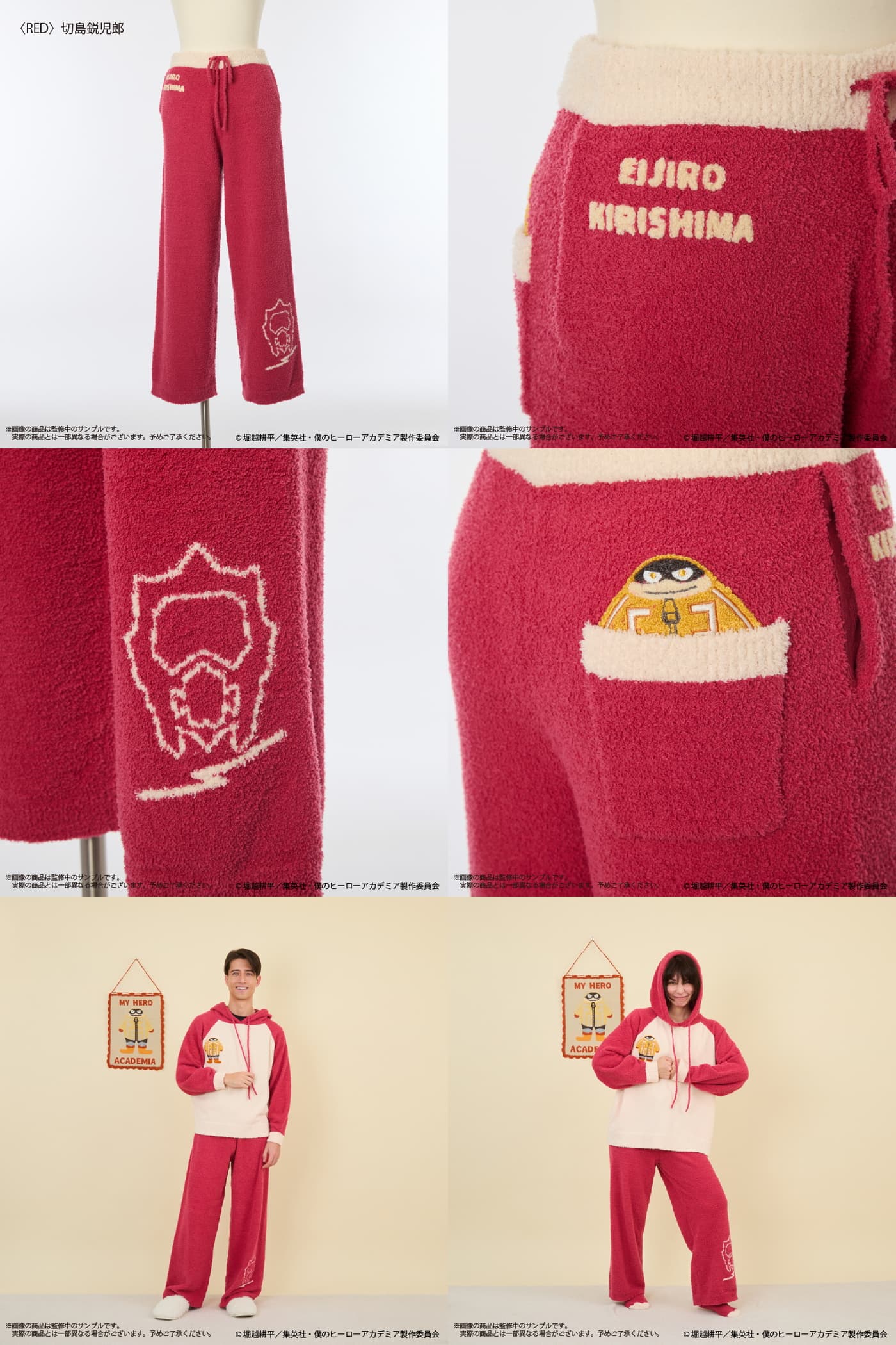 切島鋭児郎、心操人使、常闇踏陰、ミルコのルームウェアをはじめ、ソックスやニットタペストリー、エンデヴァーとオールマイトのもこもこあみぐるみまで、幅広いラインナップが展開される。