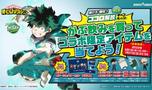 堀越耕平先生による大人気漫画を原作としたテレビアニメ「僕のヒーローアカデミア (ヒロアカ)」× ポッカサッポロフード&ビバレッジ「がぶ飲み」によるコラボ第2弾「ココロ開放キャンペーン」が、2022年6月1日より全国のスーパー等にて実施される。