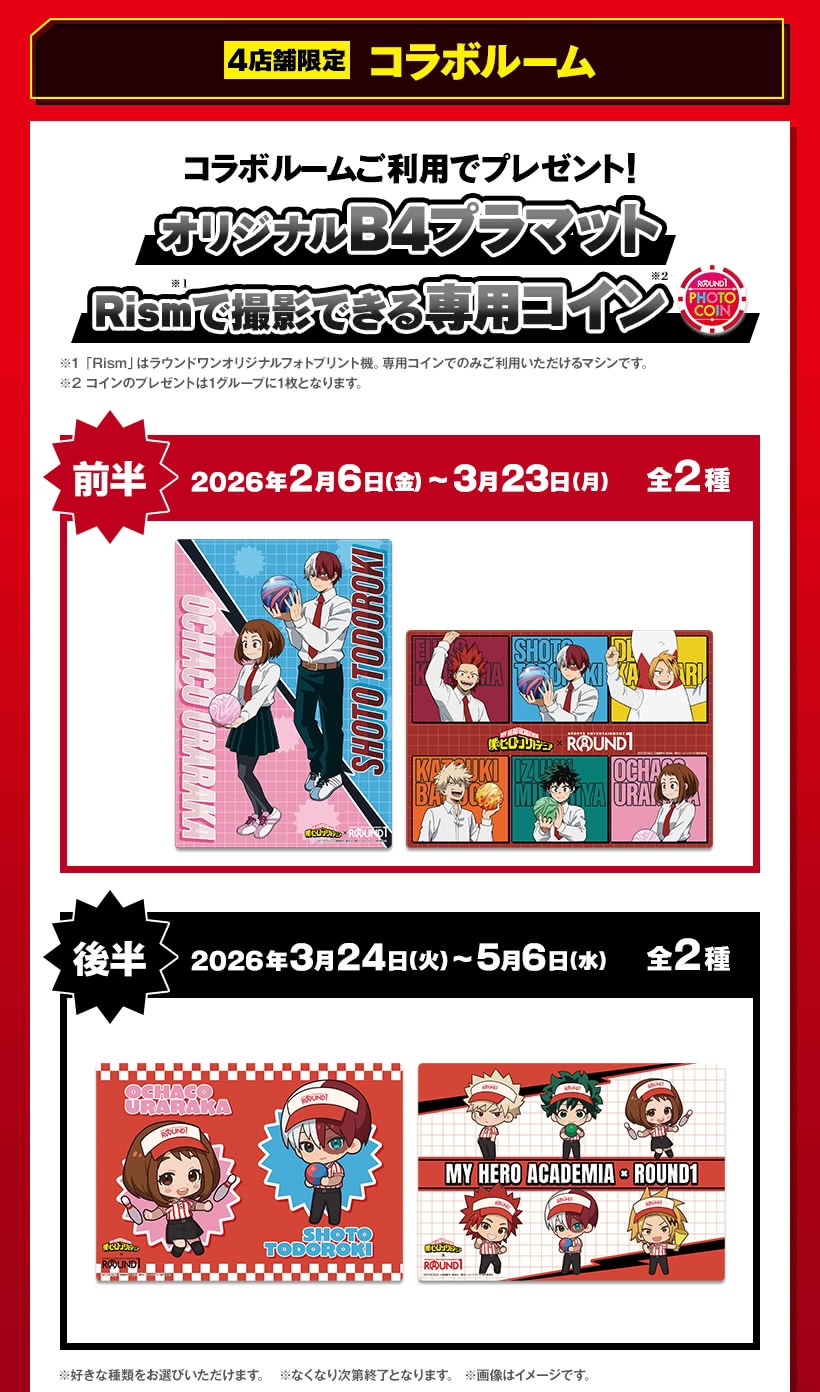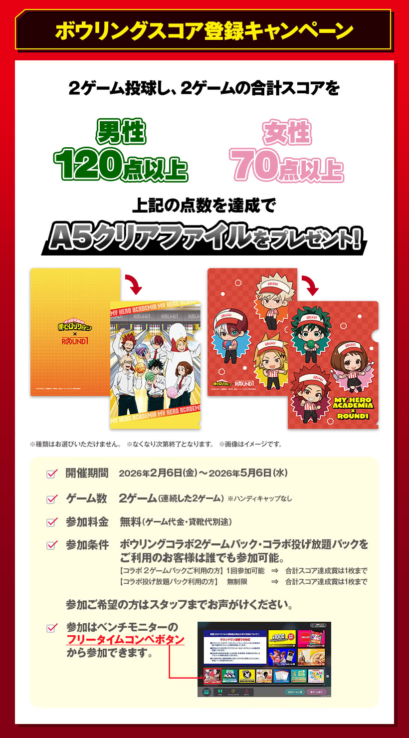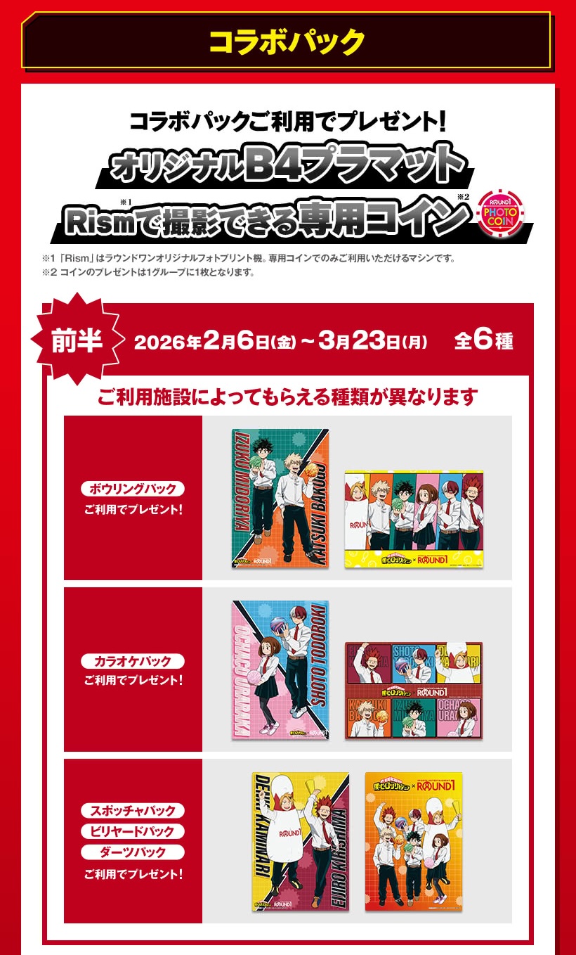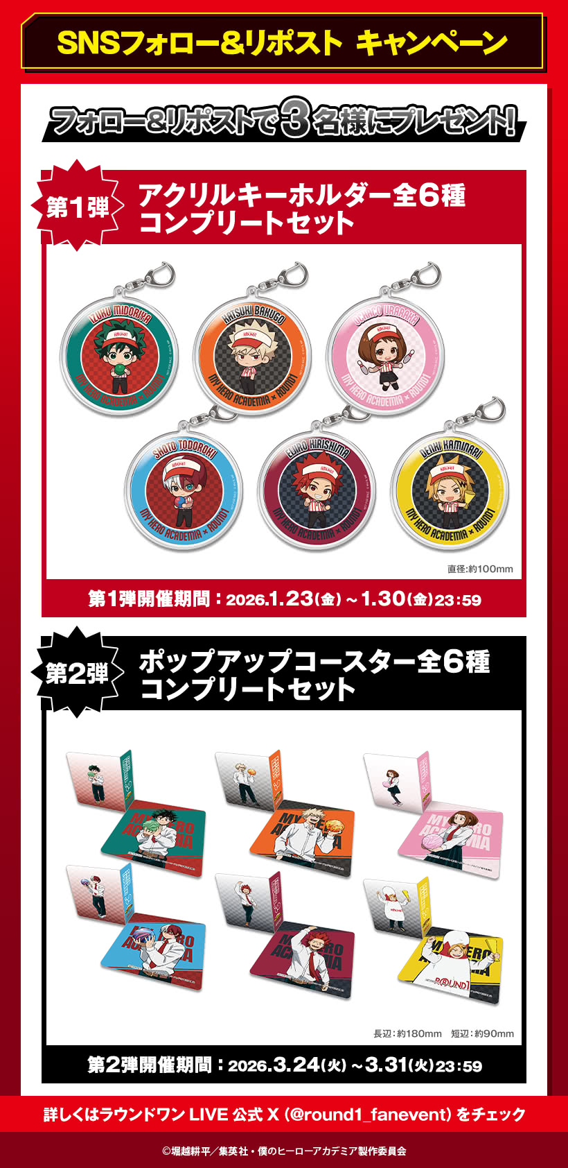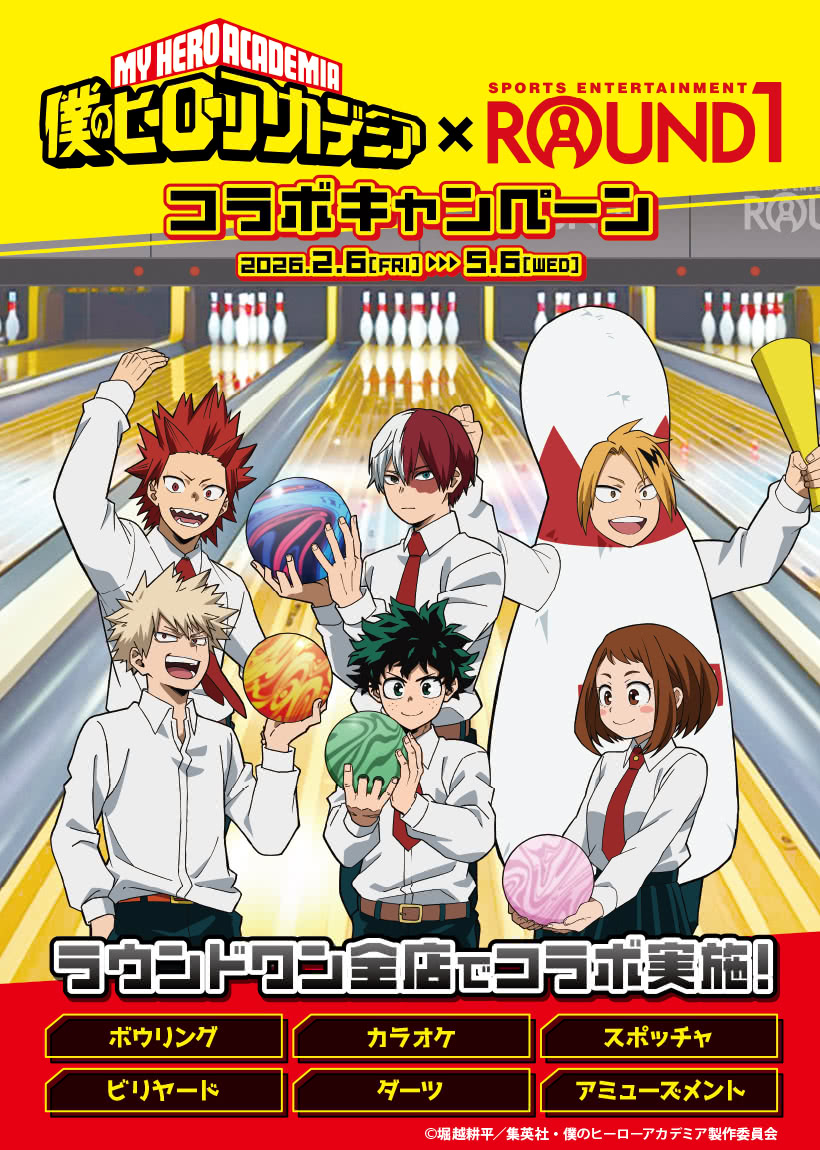 全世界累計発行部数1億部を突破した「堀越耕平」先生による大人気漫画を原作とするTVアニメ「僕のヒーローアカデミア (ヒロアカ)」× ROUND1 (ラウンドワン) 全国にて、2026年2月6日よりコラボキャンペーンがスタートする。