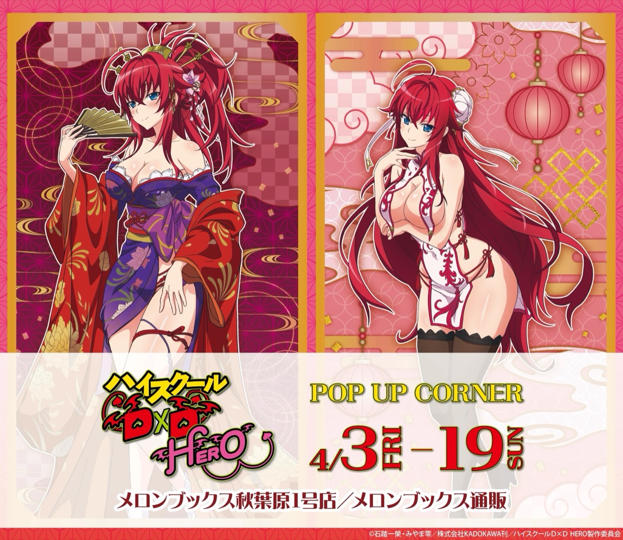石踏一榮先生によるライトノベルを原作とするアニメ『ハイスクールD×D HERO』のポップアップストアが、メロンブックス秋葉原1号店にて2026年4月3日〜4月19日まで開催される。