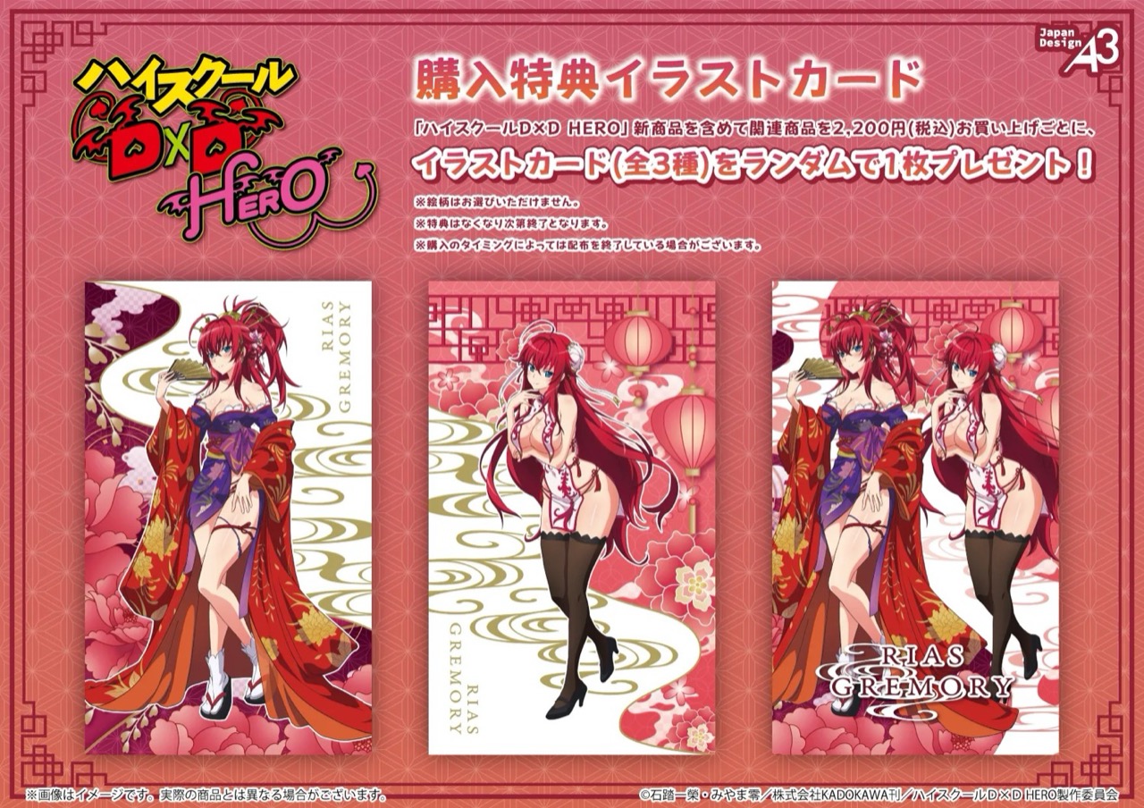 「ハイスクールD×D HERO」ポップアップストアにて、グッズをお買い上げ2,200円(税込)毎に特典として「ポストカード 全3種」がランダムに1枚プレゼントされる。