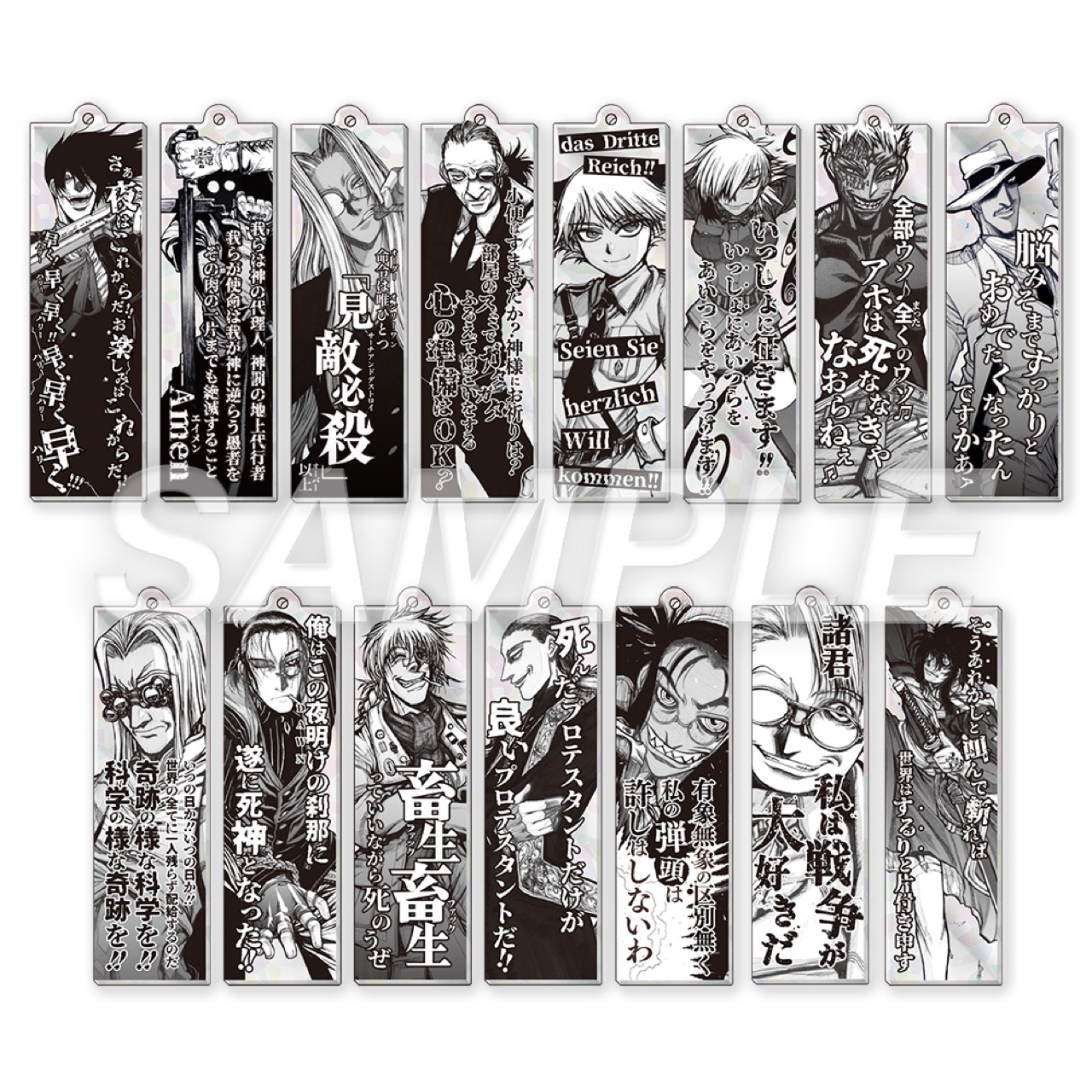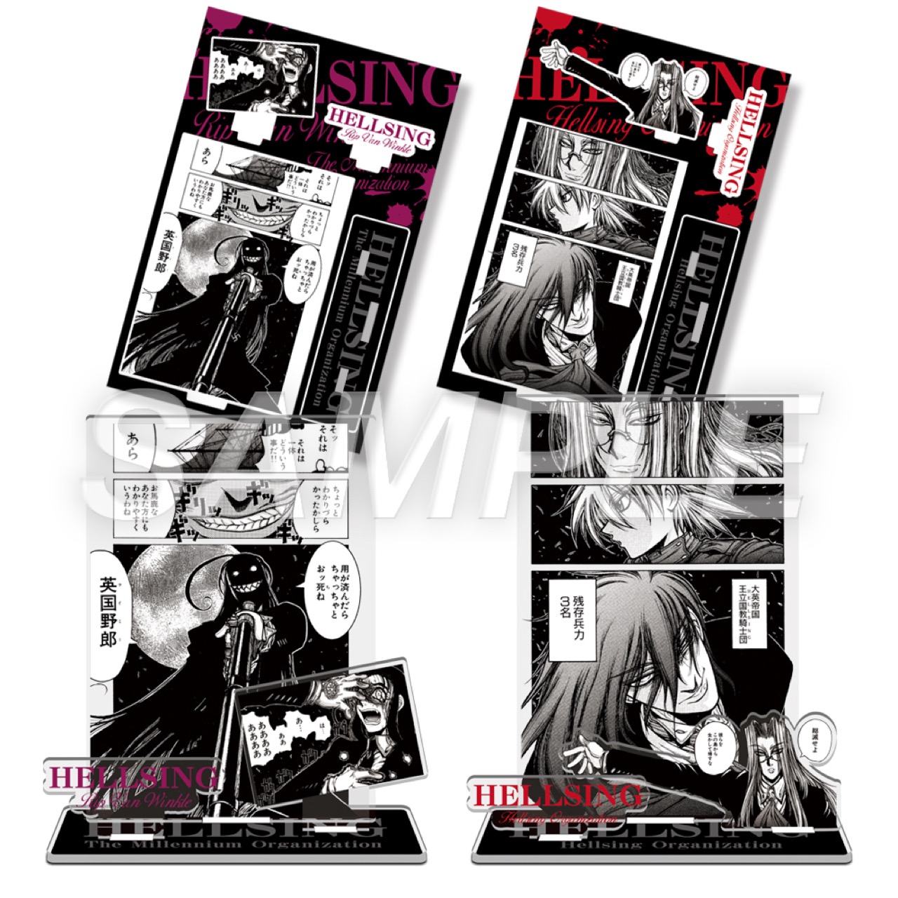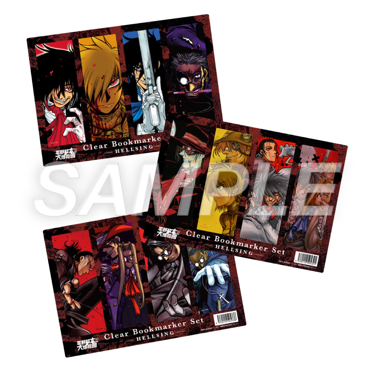 「A3キャラファイングラフスパークルデザインマット」「P3キャラファインボードF:セラス&ピップ」「複製原稿 ヘルシング」「複製原稿 ドリフターズ」「HELLSING/アーカード Tシャツ」などがラインナップする。