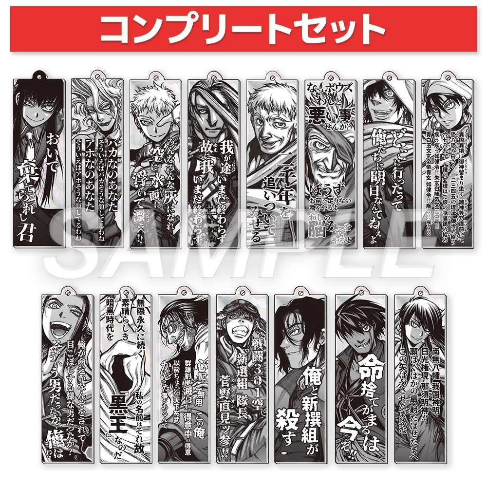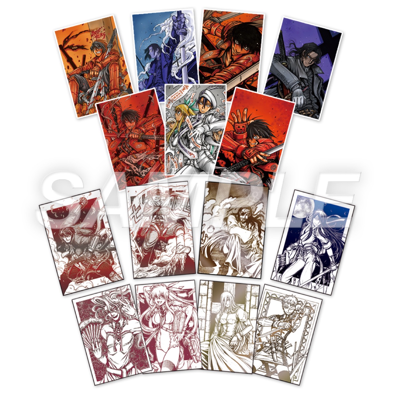 さらに、関連商品を含めて5,000円(税込)お買い上げごとに、特典として「クリアカード (全6種)」をランダムに1枚プレゼントされるほか、10,000円以上ご購入すると、アニメ『DRIFTERS』の原画が当たる抽選会に参加できる。