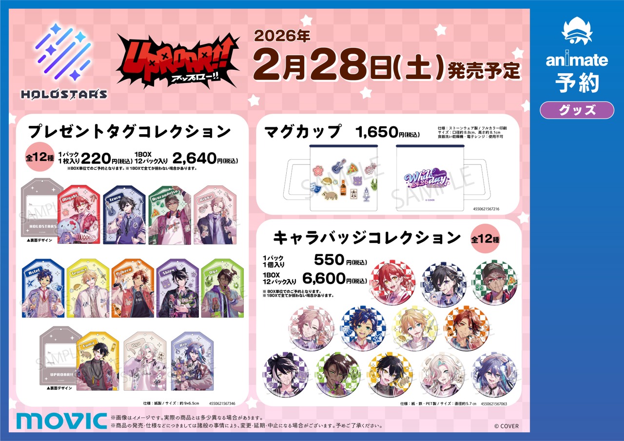 ホロライブプロダクションの男性VTuberグループ「ホロスターズ」の『HOLOSTARS ホワイトデーフェア2026』が、全国のアニメイト対象店舗にて2025年2月28日〜3月22日までの期間限定で開催される。