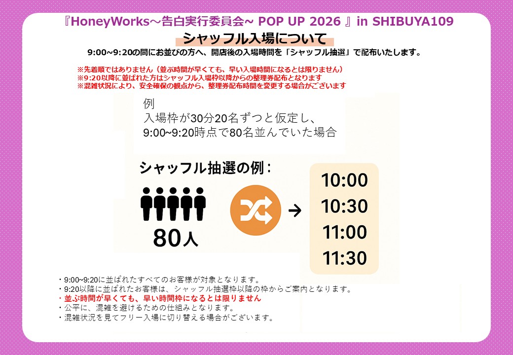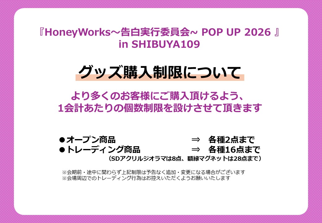 『HoneyWorks~告白実行委員会~ POP UP 2026 in SHIBUYA109』告白実行委員会 新シリーズ初のキャラクターグッズやヤマコ描きおろしの購入者特典など内容盛りだくさん✨