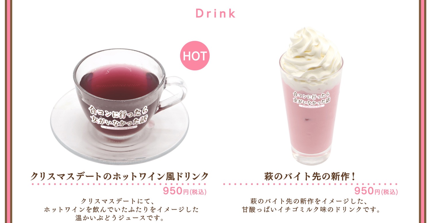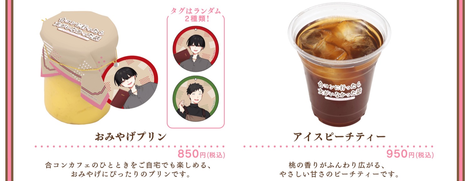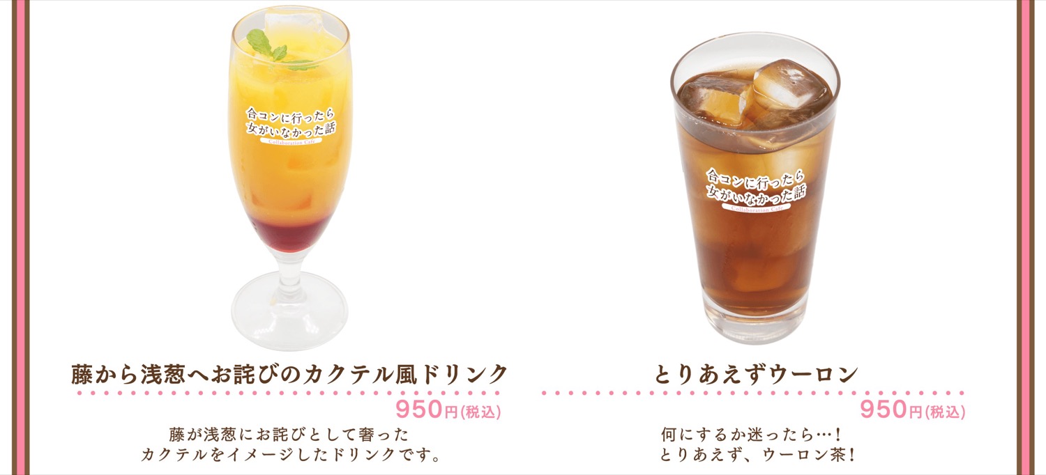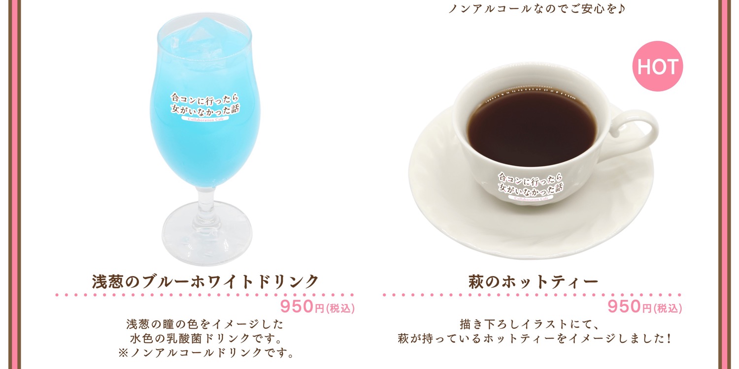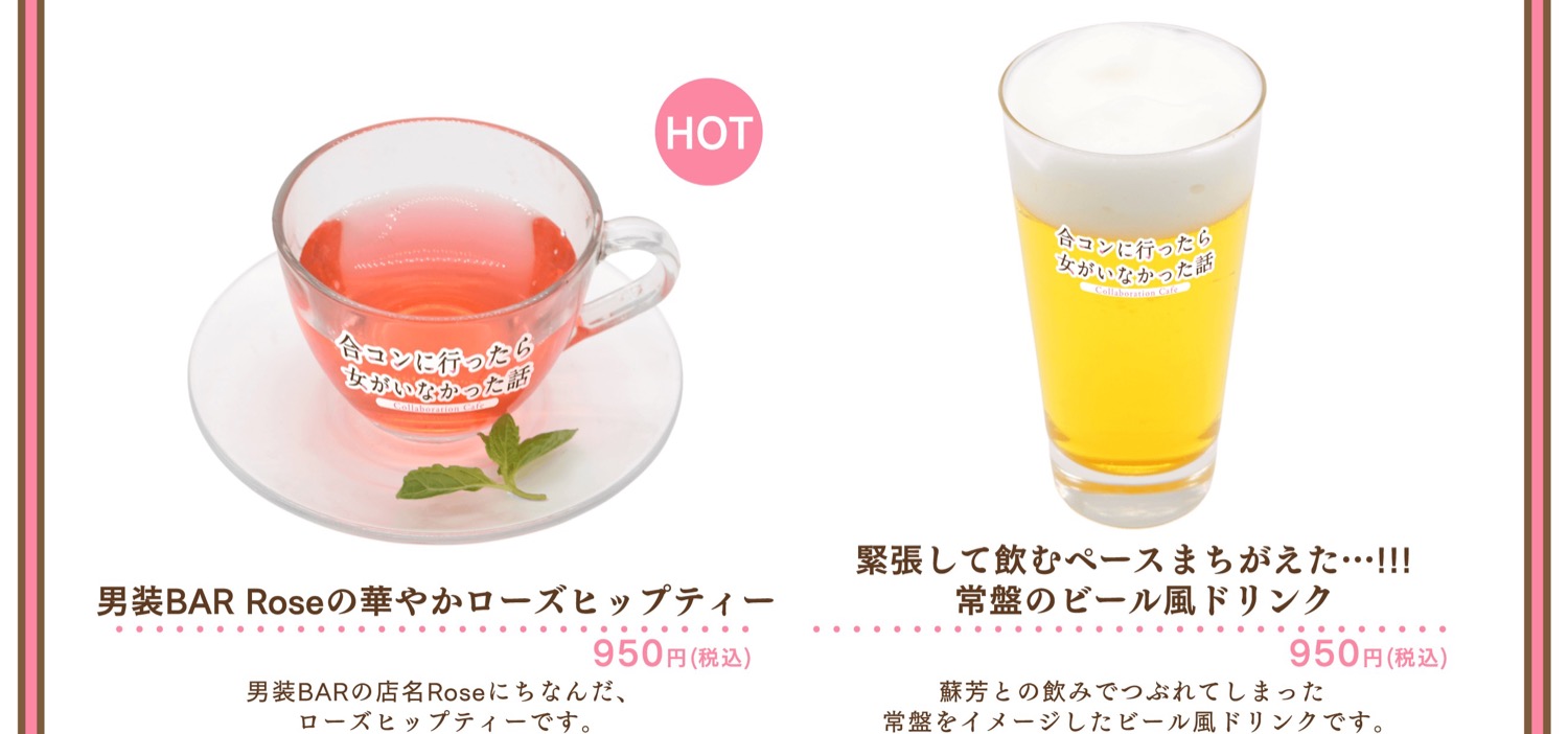 2026年4月29日より、motto Cafe池袋にて開催される「合コンに行ったら女がいなかった話」カフェでは、前半と後半で異なるメニューや特典が登場!
