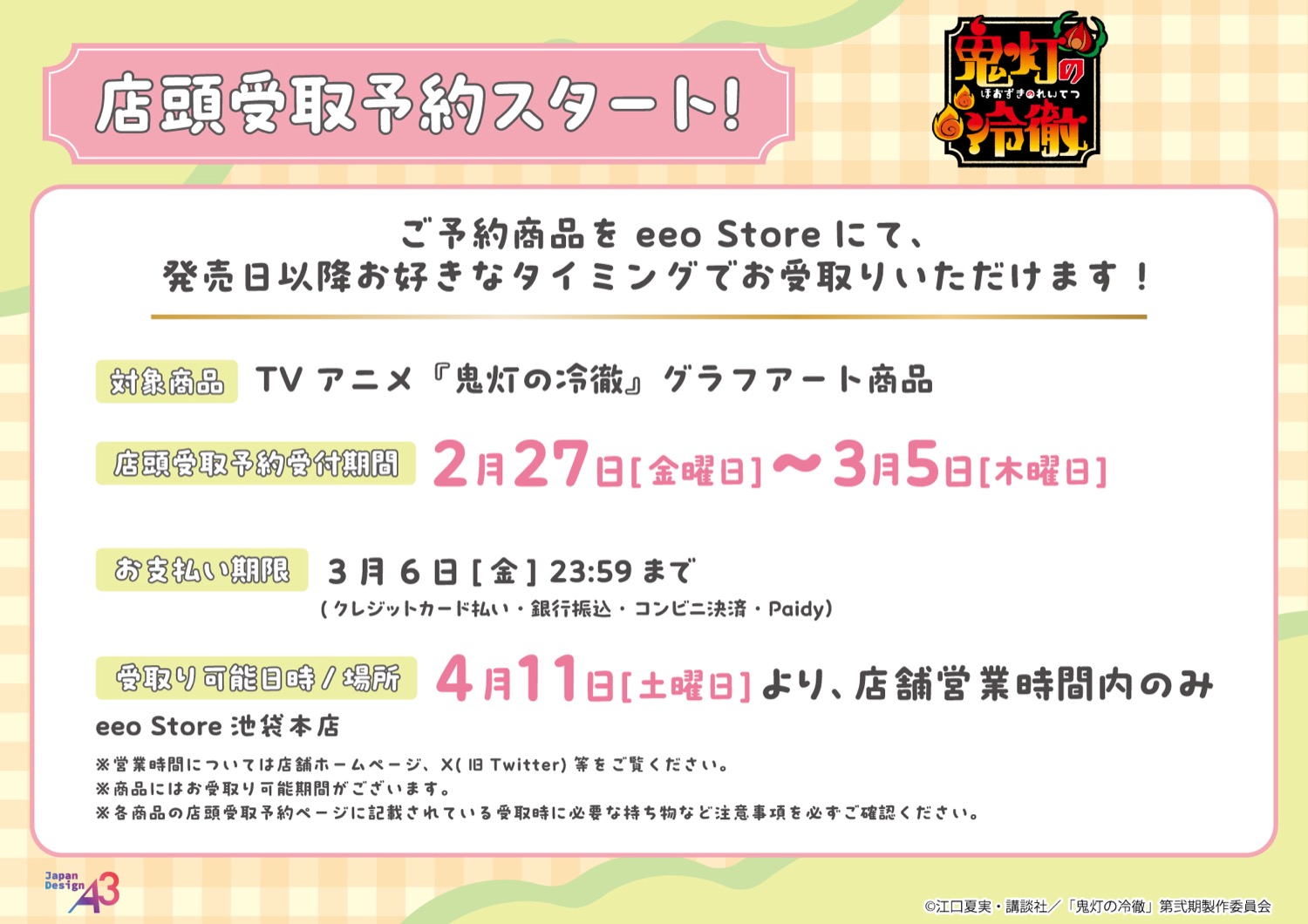 2026年4月11日より「eeo Store 池袋本店」にて、アニメ「鬼灯の冷徹」の新作グッズを販売!