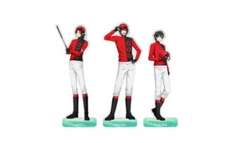 「ヒプマイ × UMAJO」コラボでは、ジョッキースタイルのキャラクターたちと競馬場を楽しむ帝統の描き下ろしイラストを使用したアクリルスタンドや、馬耳を付けたミニキャライラストデザインのおでかけマルチケースなど、コラボ記念アイテムを多数発売!