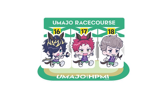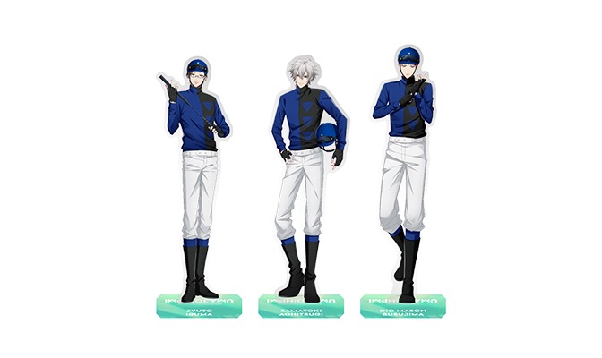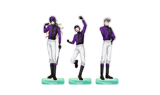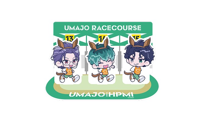 「ヒプマイ × UMAJO」コラボでは、ジョッキースタイルのキャラクターたちと競馬場を楽しむ帝統の描き下ろしイラストを使用したアクリルスタンドや、馬耳を付けたミニキャライラストデザインのおでかけマルチケースなど、コラボ記念アイテムを多数発売!