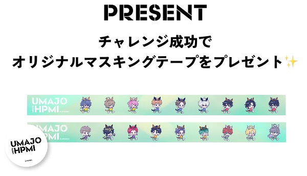 11レース終了後、1着の馬の枠色と配布されたカードの枠色が一致した方に、チャレンジ成功特典として「オリジナルマスキングテープ」を1つプレゼント! (※オリジナルマスキングテープの引き換えは当日のみ有効となります。11レース確定後、16:45までに引換所へお越しください。)