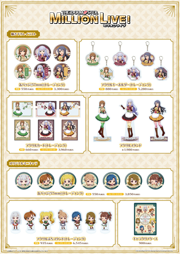 「アイドルマスター ミリオンライブ! (ミリマス)」ポップアップストアでは、萩原雪歩・白石紬・高山紗代子たちが”和風喫茶”衣装に身を包む、描き下ろしイラストを使用した新作グッズが多数販売!